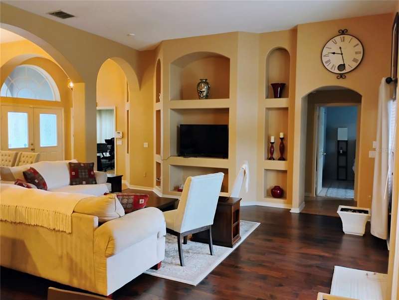 Eligible for 100% Financing with a USDA loan. LOW HOA, NO CDD and the Property Appraised above Listing price, thus instant Equity. Large screened in Pool Home with under roof lanai and fenced in back yard and tranquil pond view from the front of the home. Enjoy the bright Florida Sun while relaxing in the hot tub or floating in the sparkling cold blue pool. This contemporary home has Tall Ceilings, split plan Bedrooms, Open Plan yet Formal Dining, Living room and a great floor plan. Master Bedroom, Living room and Guest Bathroom has exterior doors leading to the Swimming pool/outdoor entertainment area. The Kitchen has a separate eating nook, a breakfast bar and a nice size pantry. Main Bedroom is large and the Main Bathroom has an oversized Shower. Close to shops, restaurants, hospitals, schools and major highways.