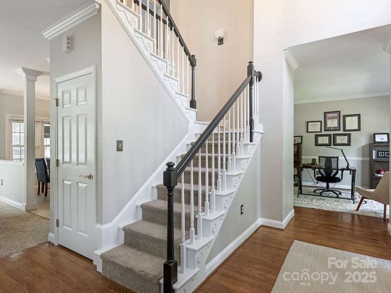 Tucked away on a quiet cul-de-sac, this beautiful home sits on over a third of an acre in the highly desirable Stevens Mill community. Step inside the soaring two-story foyer and find a formal dining room & living room with gleaming wood floors and 9' ceilings. The kitchen features custom cabinetry, granite countertops, under counter lighting, tile backsplash, recessed lighting, desk and a center island, all open to a bright breakfast area. The family room, anchored by a brick fireplace with gas logs, flows seamlessly to the screened porch complete with a mounted TV, dual ceiling fans and low-maintenance composite deck flooring?perfect for relaxing or entertaining. The level backyard is spacious and ideal for play or gatherings.Upstairs, the large primary suite offers a dual vanity bath with separate shower, garden tub, and walk-in closet. The bonus room (with closet) can easily serve as a 5th bedroom. Upgraded lighting throughout adds a modern touch.Conveniently located near shopping and easy interstate access, this home combines comfort, style, and location. Neighborhood features a basketball court, picnic area, swings and ball fields.