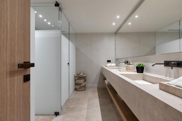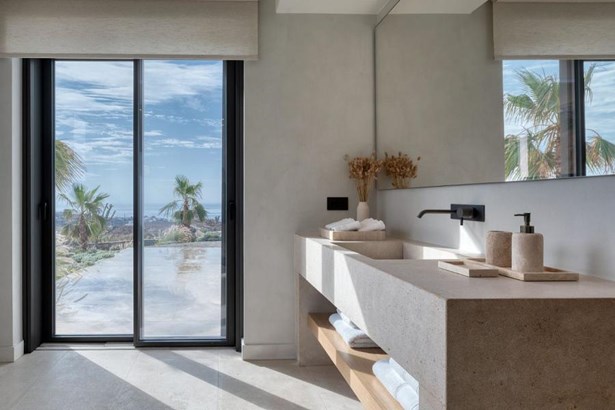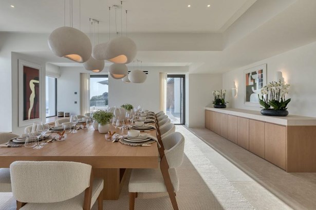 Outside the premises, visitors have the delightful opportunity to relax and rejuvenate amidst the expansive and inviting ambiance of the generously proportioned terrace. Additionally, they can enjoy a revitalizing swim within the vast expanse of the 175-meter private infinity pool while indulging in the breathtaking panoramic views surrounding them.