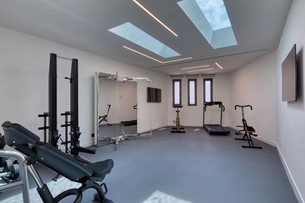 The property can accommodate 20 guests in 10 luxurious bedrooms and 3 staff rooms. The villa features a spacious and elegantly decorated living room, a fully equipped kitchen and bar, and one double bedroom with an ensuite bathroom on the first level. On the second level is a master bedroom with an ensuite bathroom, a private terrace, and an amazing sea view. On the ground level, guests can find eight bedrooms with ensuite bathrooms, of which 4 have a sea view while the rest have a garden view. A private, fully equipped gym is also available for those wishing to maintain their fitness routine during holidays.