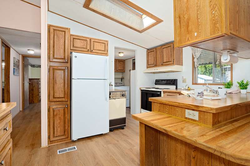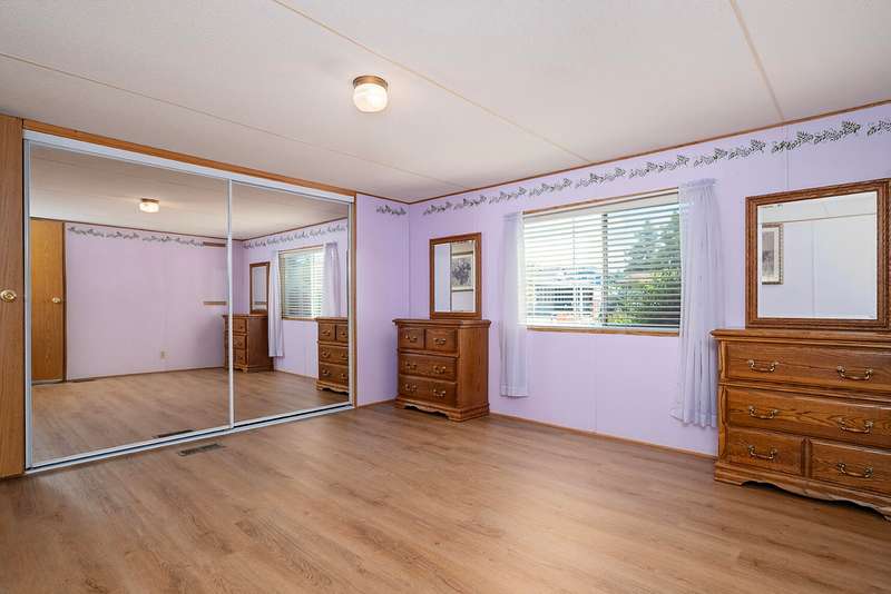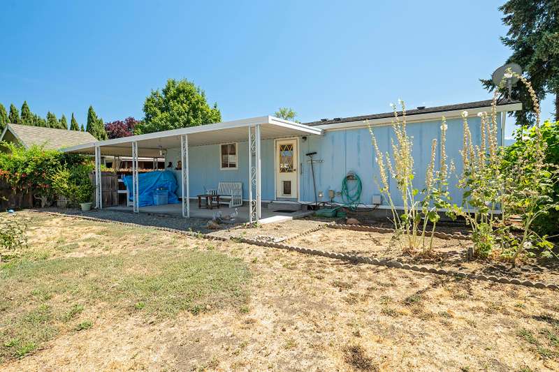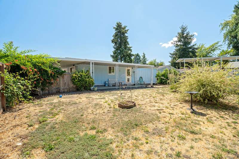 Great First Home in Southwest Medford. This cute and comfortable home is perfect for a first-time buyer! It's centrally located and has a great open layout with brand-new laminate wood floors throughout. The large primary bedroom comes with its own full bathroom, and the second bedroom is big enough for a king-sized bed. There's also a handy half bath for guests and a laundry room with the washer and dryer included. Out back, you'll find a spacious yard with a covered patio and tons of potential to make it your own. This home is clean, move-in ready, and waiting for someone to make it theirs!