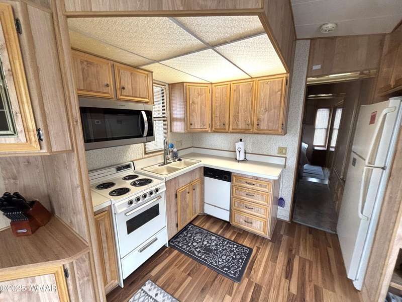 Welcome home to this great park model in desirable Juniper Ridge Resort! Huge covered deck for entertaining and relaxing during the beautiful summer months. Pavers wrap around the side of the home. Very clean, well-kept home is move in ready. Includes large shed with workbench and newer washer/dryer. 3 New ENERGY Efficient Mini Splits. NEW EXTERIOR PAINT.LIFETIME WARRANTY ROOF! Open kitchen, functional layout with a large dining area. Amenities include 18 hole golf course, White Mountain Lake privileges for swimming, boating & fishing. Poker tables, pickle ball, tennis, wood shop, silversmith, lapidary, pottery, live bands, dancing and much more. Schedule an appointment today to see all that this property and Juniper Ridge Resort has to offer! MUST SEE!!