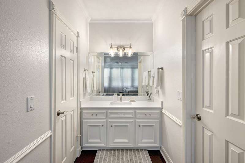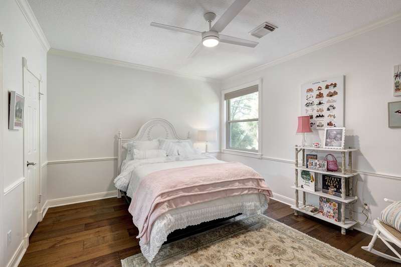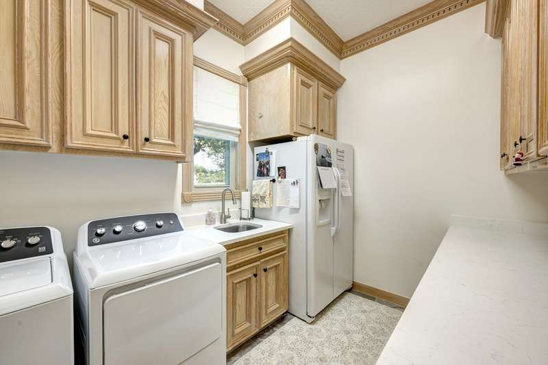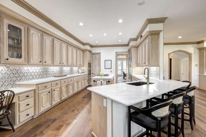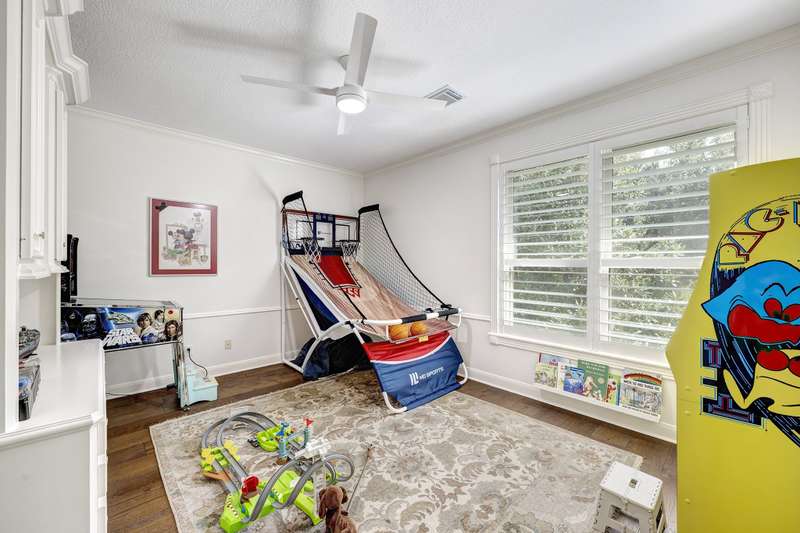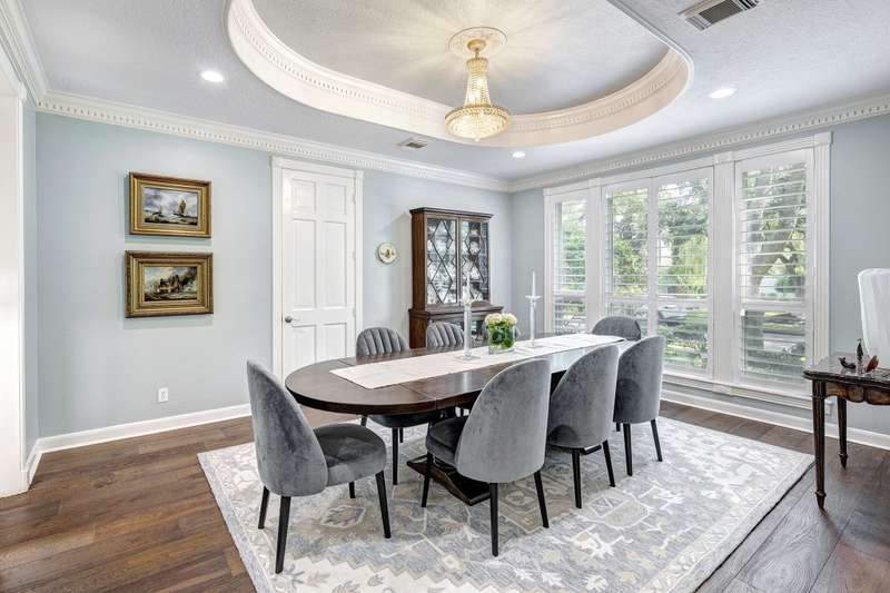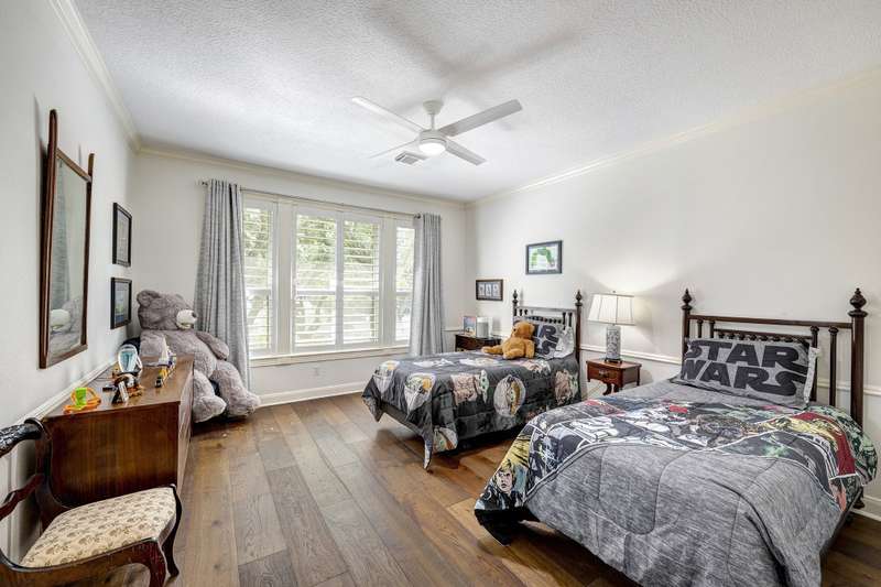 Enjoy gorgeous views of Bay Oaks Golf Course’s 5th hole from this beautifully renovated estate, completed in 2024–2025 with new floors, windows, and updated kitchen and baths. A two-story foyer with winding staircase opens to an office with cathedral ceilings and built-ins, while elegant dentil moldings and fine woodwork add timeless detail. Features include a formal living with fireplace, formal dining with china/crystal storage, oversized den with wet bar overlooking the golf course, and an island kitchen with an ideal layout for entertaining. Upstairs offers a luxurious primary suite with jetted tub and walk-in shower, a gameroom with wet bar and balcony, a second primary suite, and three oversized guest rooms with en-suite or Jack & Jill baths. Outside, a gated motor court leads to a three-car air-conditioned garage with workshop and a pool-sized yard, all within close proximity to the country club, pool, and tennis courts. All info per Seller.