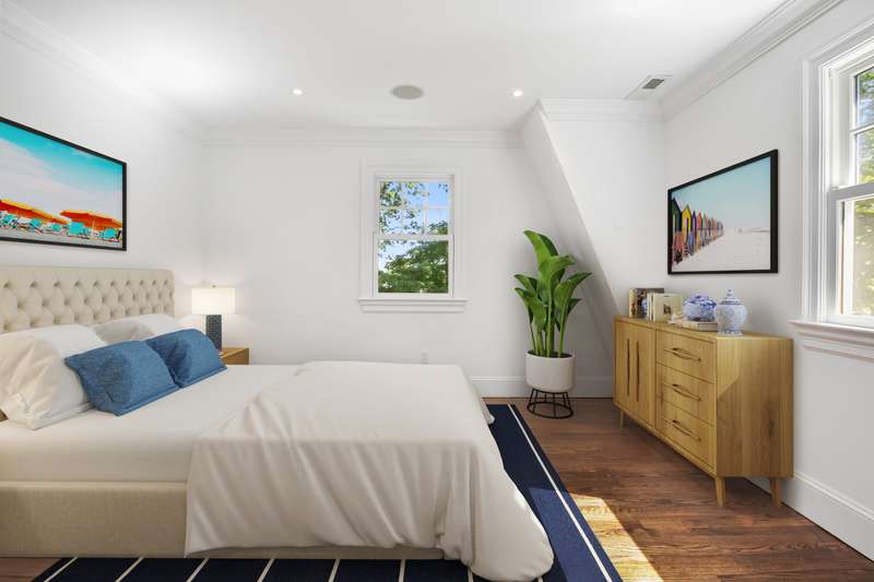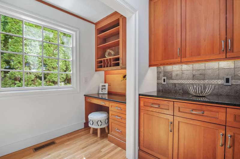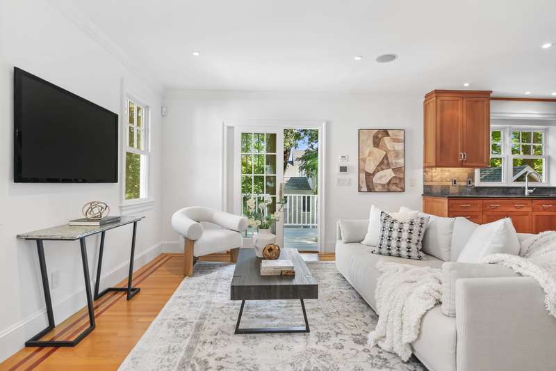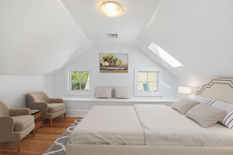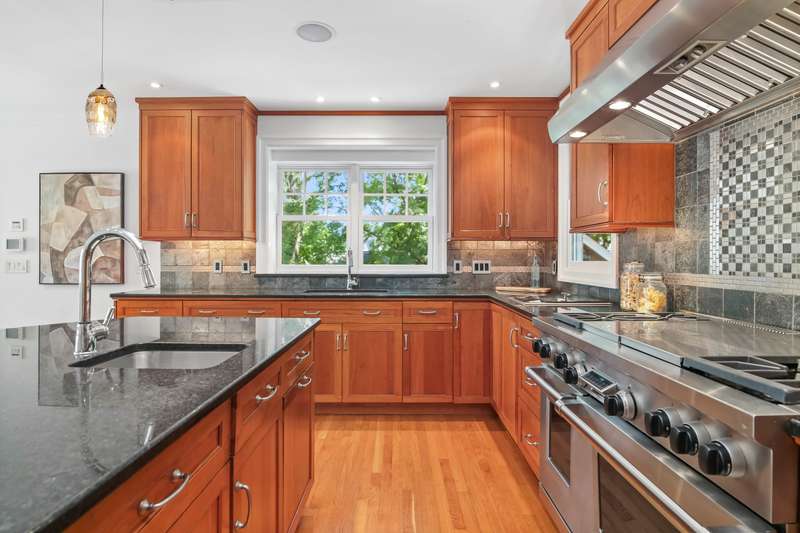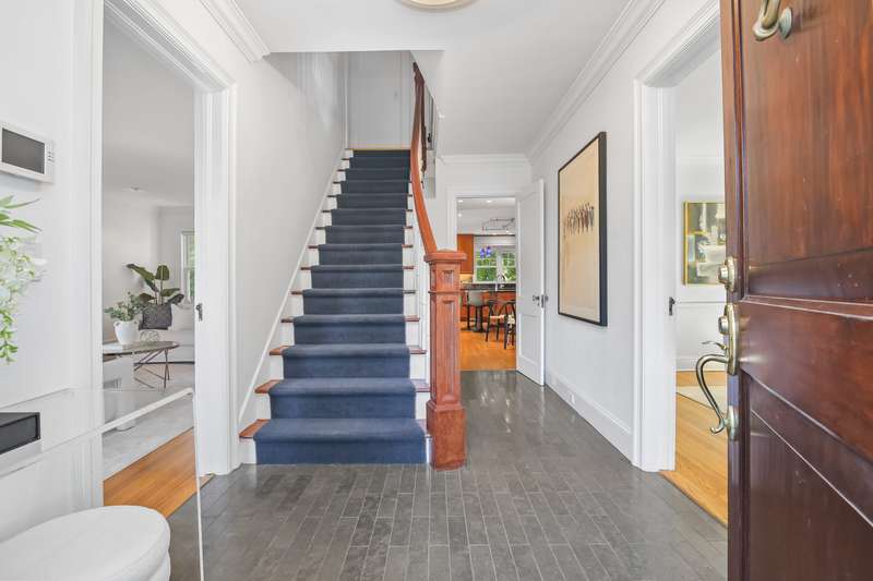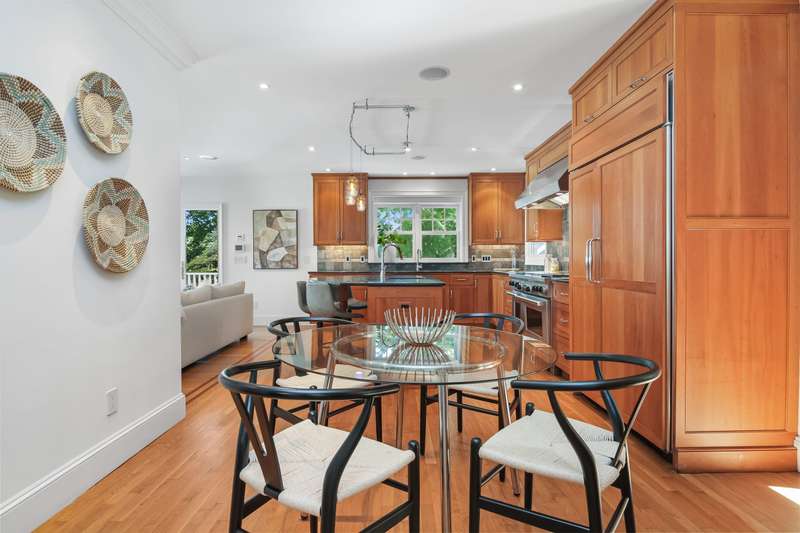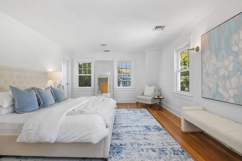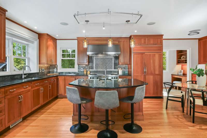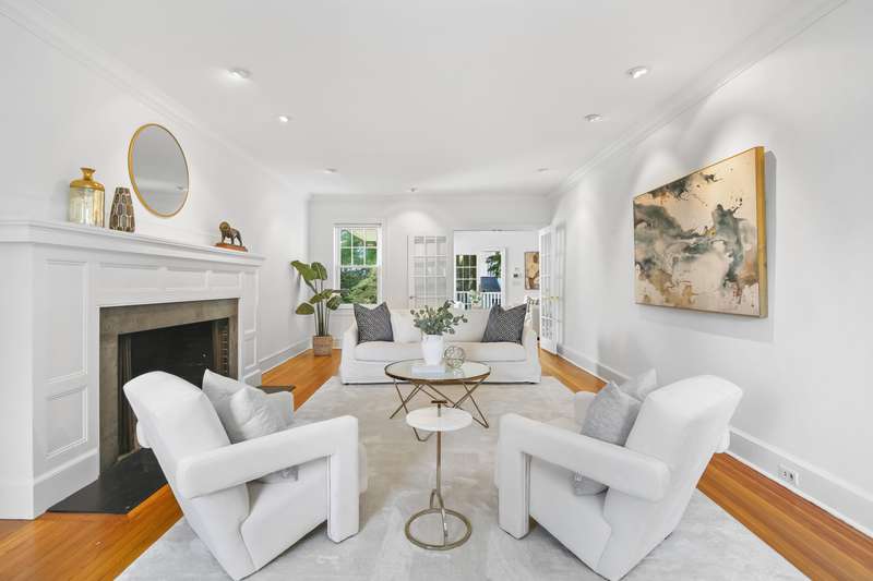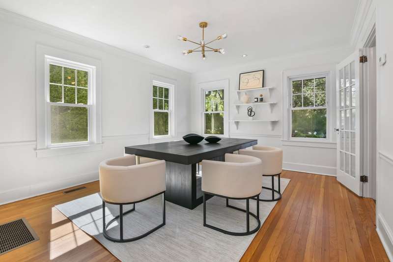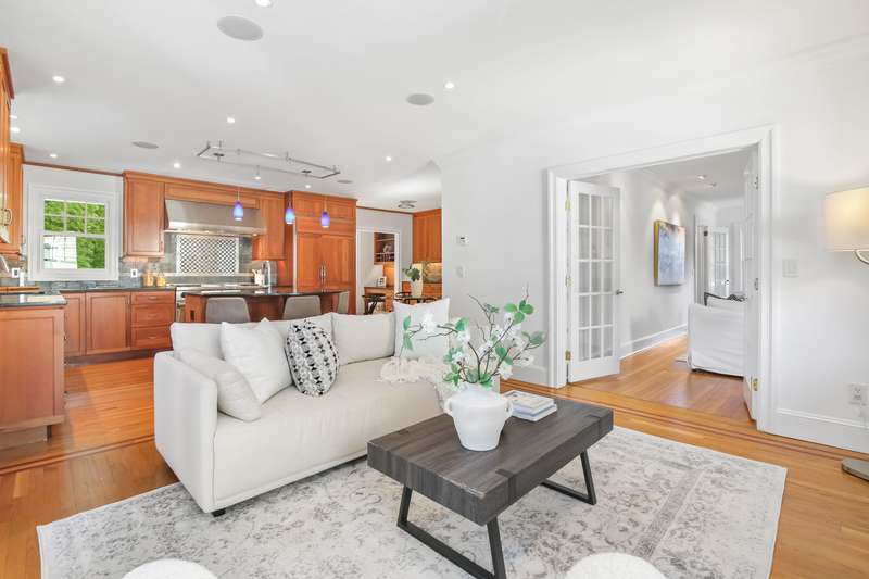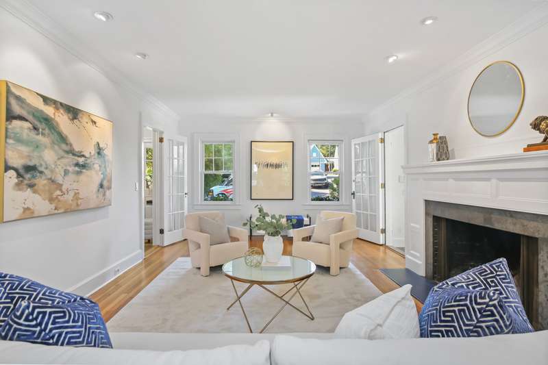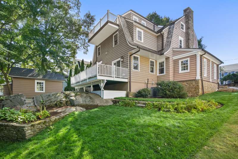 Minutes away from all Greenwich has to offer. Charming 5 bedroom home is within close distance to the train, park, shops and restaurants. The sun-filled, open layout features an entry that leads to a living room with a cozy fireplace, and a formal dining room perfect for entertaining. Kitchen with plenty of seating and office nook opens to a bright family room with access to a deck, ideal for outdoor dining. The spacious primary suite features two walk-in closets and a large bathroom. Two additional bedrooms, a full bath and a great office with built-ins round out the second level. The third floor offers two more bedrooms with a full bath and a second office with a private deck and winter water views. Refinished floors and new AC system. One-car detached garage.