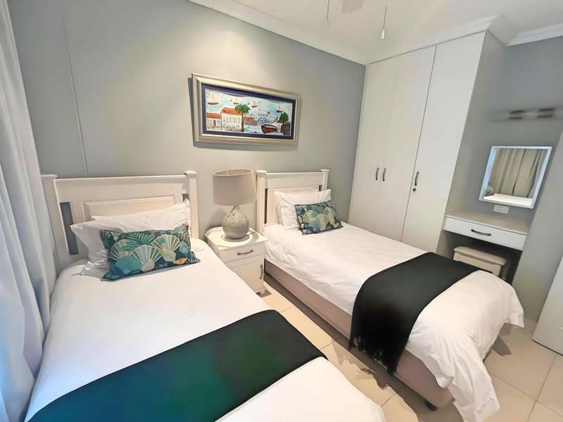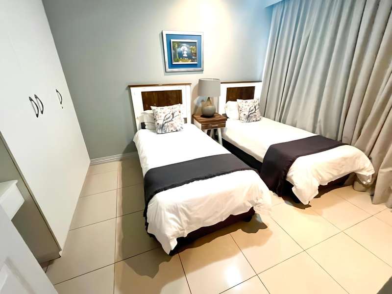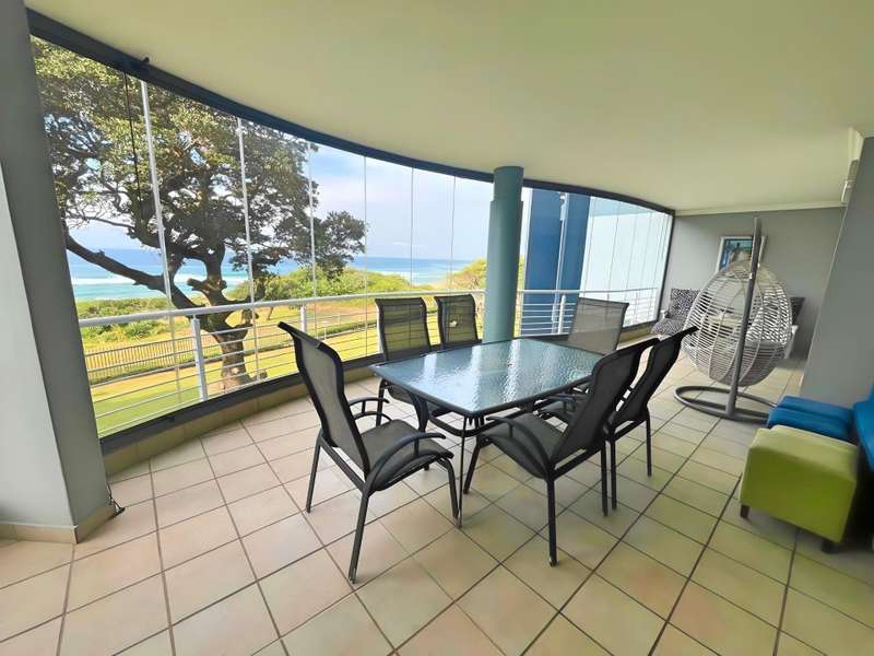 BEACHFRONT PERFECTION.....If you are looking for luxury, stunning sea views and direct access to beach, look no further. This upmarket and modern complex is situated right on Lucien beach, Manaba, a stone throw away from the ocean! On entering this beautiful modern furnished apartment, you feel right at home. The open plan design with living area and modern kitchen with granite tops opens onto the undercover balcony which is enclosed. The balcony is closed with frameless folding windows where you can enjoy sea views whilst spending quality time with your loved ones. Furthermore there are 4 spacious bedrooms with built-in cupboards, 2 modern bathrooms. The spacious main bedroom has an en-suite and also leads out to the balcony with sea views. This complex offers a lift, 24 hours security, CCTV cameras, jo-jo tanks, 2 undercover parking bays, storeroom, visitors parking, communal gardens with jungle gym for kiddies and beautiful sparkling pool with direct access onto the beach. The perfect lock up and go holiday apartment or permant residence. Prepare to fall in love with this front row apartment as uncompromising quality, perfection and location is the key words. Contact us to schedule your private viewing.