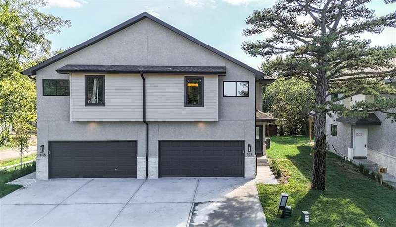 Welcome to SequoiaLees Summits newest twin villa community, ideally located just a half mile from vibrantDowntown Lees Summit. These thoughtfully designed two-story townhomes offer 4 bedrooms, 3.5 bathrooms, and a 2-car garage. Lawn care, maintenance free exterior, and trash service are all included, giving you the convenience of low maintenance living. Step inside to find beautiful hardwood floors throughout the open main level. The spacious kitchenfeatures quartz countertops, a stylish tile backsplash, an oversized island, and custom cabinetry. Upstairs, youll findthree generously sized bedrooms, each with a walk-in closet. The hall bath includes a tiled shower, tile flooring, and anoversized vanity with excellent storage. The finished lower level adds even more living space with a fourth bedroom, fullbath, and a versatile den/studyperfect for a home office or guest suite. Enjoy outdoor living on your private patio, ortake advantage of the communitys walkable location. Sequoia combines modern design, comfort, and convenienceall ina prime location near shopping, dining, and entertainment.