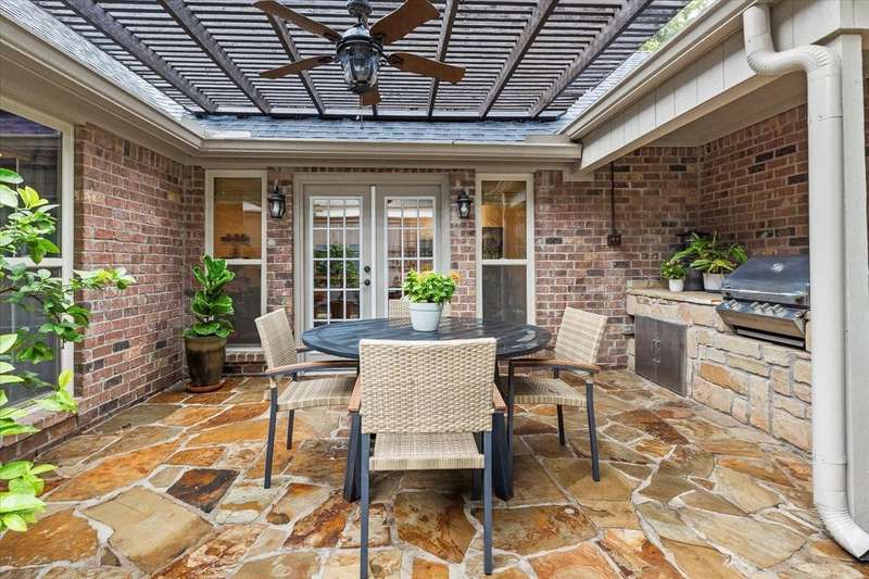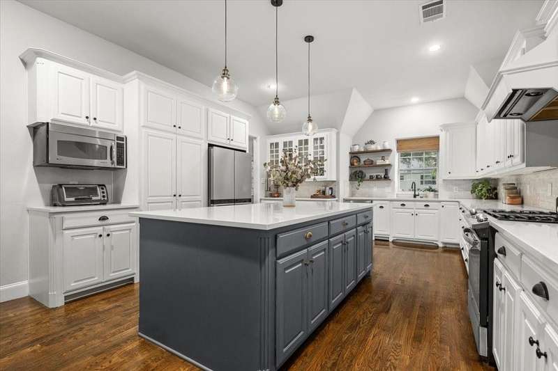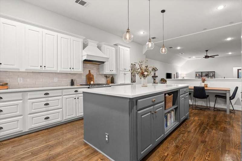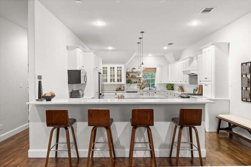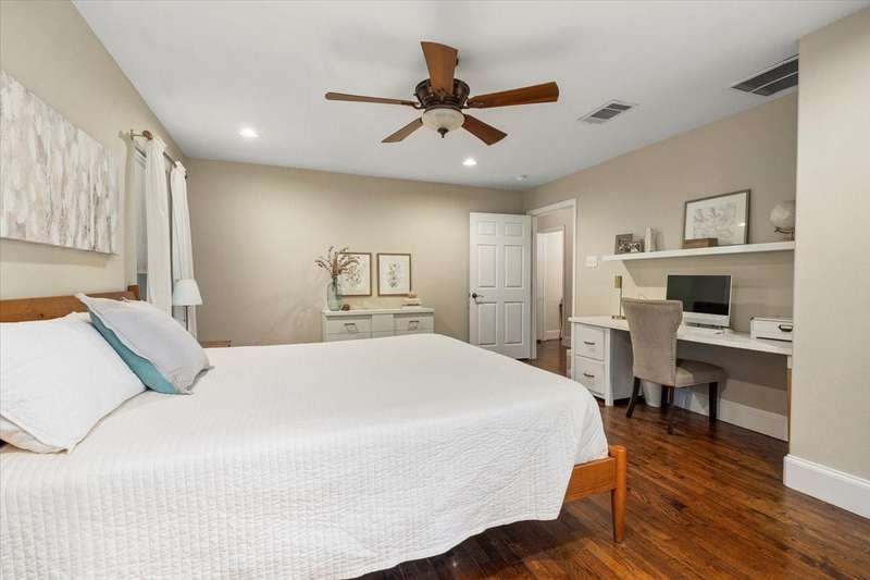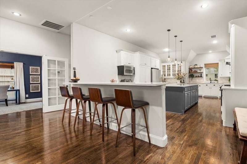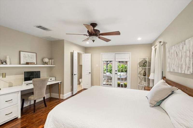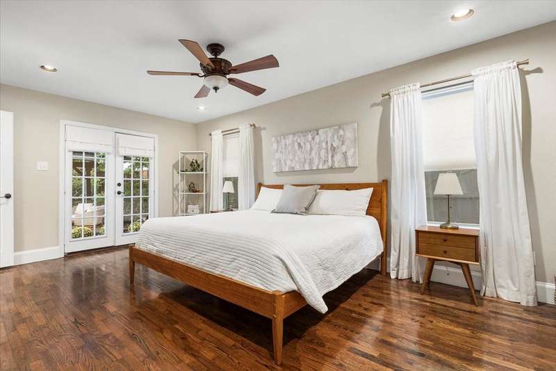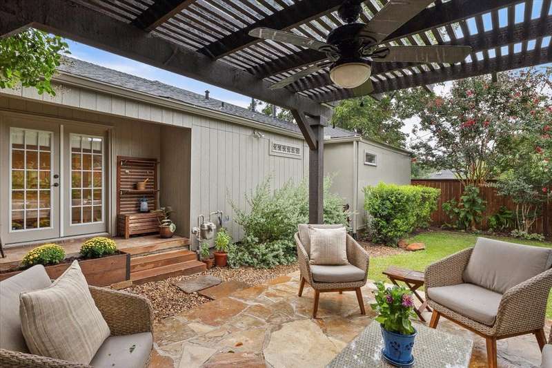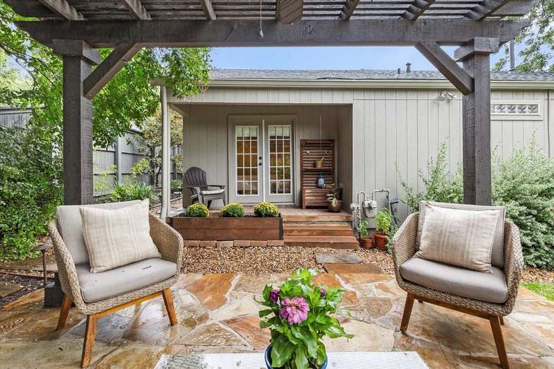 Tucked away in a quiet cul-de-sac in historic Berkeley, this stunning 3,000+ sq. ft. home blends classic 1949 charm with modern updates. Originally renovated by prior owners, it has since been further elevated with a remarkable kitchen featuring an oversized engineered quartz island, stainless appliances, and stylish fixtures. Beautiful wood floors flow throughout the open-concept living areas, while French doors open to a private office with a spiral staircase leading to a loft, perfect for a den or quiet library space. A formal dining room provides the perfect space for entertaining. The spacious primary suite opens to a peaceful backyard with beautiful landscaping, a pergola, and outdoor living area, complemented by a second patio for added charm. Two additional guest bedrooms are privately situated in their own wing, offering comfort and flexibility. This home combines thoughtful design, modern convenience, and timeless appeal in one of Berkeleys most sought-after settings.