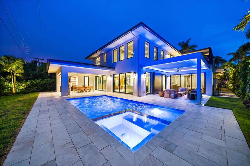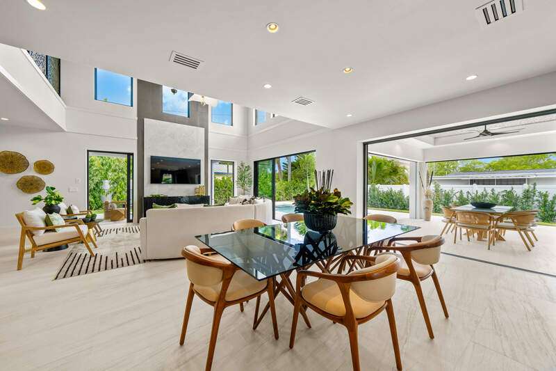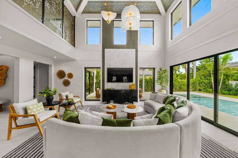 Renowned award winning custom home builder Sea Castle Development partnered with architect Ashmore Design to bring together a distinct offering in Lake Park unlike any other. Effortlessly blending elegance with livability, this extraordinary residence offers refined comfort across 3,766 square feet of sun-filled living space. This nature inspired home features an open-concept floor plan, soaring ceilings, and curated designer finishes throughout every inch. The chef's kitchen is outfitted with a top-tier Thermador appliance package, while the summer kitchen boasts premium XO appliances-ideal for seamless indoor-outdoor entertaining. With natural elements present throughout the home, the backyard oasis lures you with its charm. Featuring multiple entertaining areas, one being shaded by a motorized pergola & the other fitted with electric screens & shutters - there is more than enough space for any type of gathering. The first-floor primary suite delivers comfort and convenience, while upstairs, a bedroom and two additional en-suites surround the spacious loft and a private balcony. Additional highlights include an elevator, hurricane impact windows and doors, engineered white oak Real Wood flooring, stunning designer tile work, sonos sound system throughout, propane heated saltwater pool / spa, & 24kw generator with automatic transfer switch. Offered fully furnished, this exceptional home is move-in ready and ideally located just minutes from Naples' white-sand beaches, shopping and world class dining. Ready for immediate occupancy.