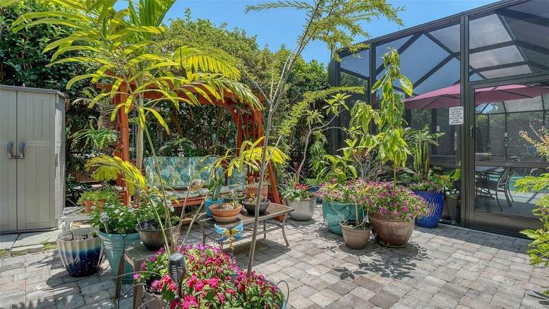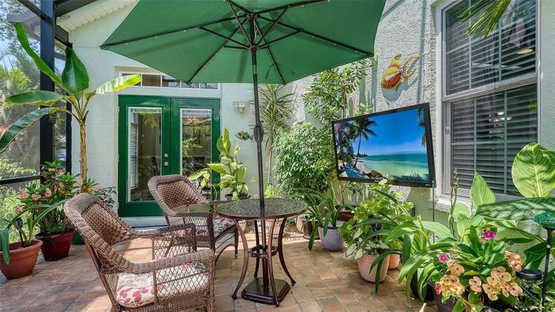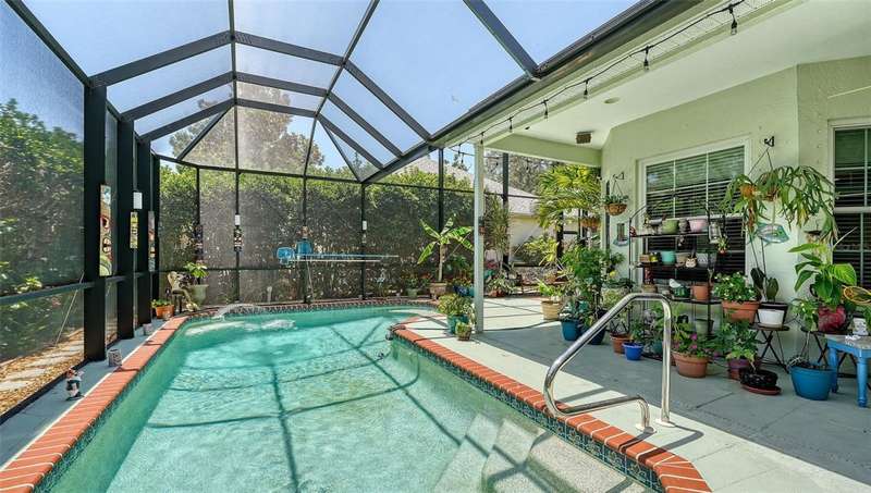 Imagine starting your day sipping your morning coffee in your secluded backyard oasis surrounded by lush tropical plants and vibrant flowers under the newer 2 story pool cage (2021).The beautifully upgraded 3 bedroom/2 bath home offers over $180,000 in improvements, making it a true standout in the sought-after boating community of The Inlets. Step inside to an open floor plan where the kitchen is truly the heart of the home. Granite countertops sparkle, complemented by custom wood cabinetry, stainless steel appliances, desk area, pantry and a charming cafe dining space next to French doors overlooking lush tropical plants and flowers and sparkling pool. The center island is a chef's dream; perfect for entertaining or casual meals. The split bedroom design offers privacy, with primary suite and guest bedrooms situated in separate wings. Thoughtful architectural details include double crown moldings, transom windows and French doors throughout. This home is incredibly energy-efficient with a number of high-end upgrades: (2022) Isocline Foam Insulation, (2024) 50-gallon gas hot water heater, (2021) Enphase Solar System with backup batteries-dramatically reducing energy costs, lowers carbon emissions offering environmental benefits, (2023) new custom front French Doors and 4 new living room windows, additional Hurricane shutters for peace of mind. Enjoy outdoor living at its finest with twinkling patio lights a heated pool (can swim laps) with all-new components and a new electric heater (2022). Follow the Turtle Trail through the lush exotic landscaping that gives Selby Gardens vibes. Smart home features include a Ring doorbell, advanced security system, and full mobile control. This home is located in The Inlets, a premier award winning boating community on the Manatee River. Residents enjoy Low HOA fees, No CDD fees, private marina with boat slips for rent/sale (depending on availability), community boat ramp for off water homes to launch your boats, fishing piers, nature trails/jogging trails, canoe/kayak launch and storage tennis courts, vibrant social groups and more. Ideal location close to airports, shopping, top-rated beaches, fine dining and entertainment. Come see for yourself why this home is not just a place to live, it's a place to love!