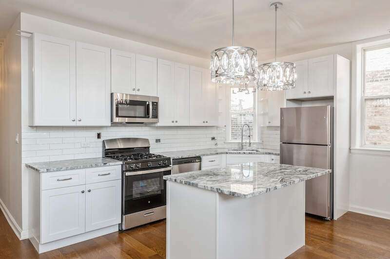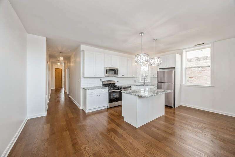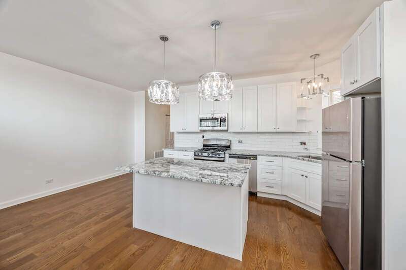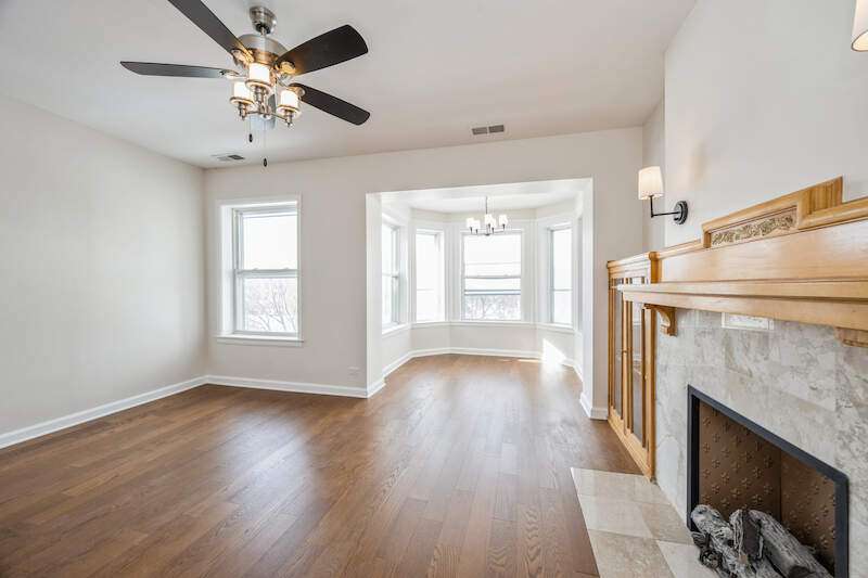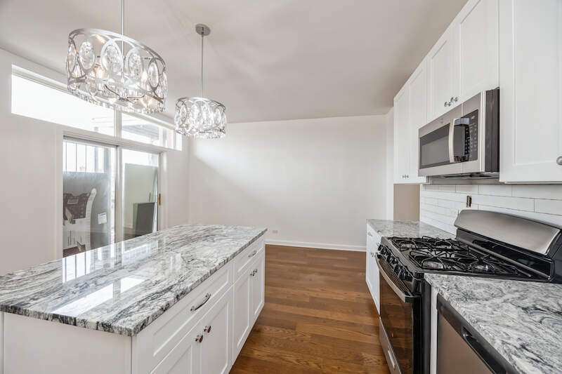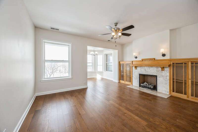 TOTALLY REHABBED TOP UNIT!! Brand new kitchen with high quality cabinetry and granite counters! Large Kitchen faces EAST for GLORIOUS MORNING SUNSHINE! Space for dining area or family room combo. Patio doors leading to large PRIVATE DECK! Direct view of magnificent Chicago SKYLINE! Luxury bathroom with marble flooring. LARGE PLANK HARDWOOD FLOORING throughout unit. GAS FIREPLACE with large wood mantle has glass door built-in cabinet shelving. Separate DEN surrounded by windows facing west for Calming SUNSET exposure and overlooking beautiful green, tree-lined BOULEVARD! In-unit LAUNDRY hook-ups, plus FREE laundry in the common area basement. Deeded secure PARKING spot included in the list price. Large private storage space included.***SPECIAL FINANCING AVAILABLE!*** Contact me for more information!
