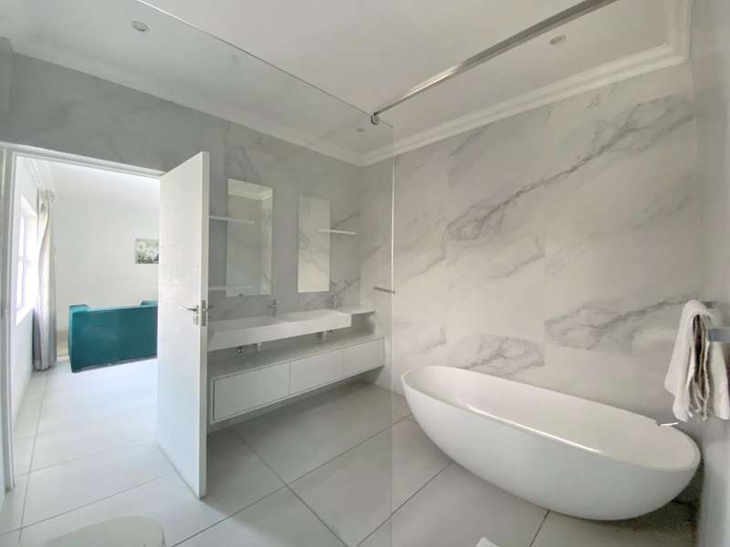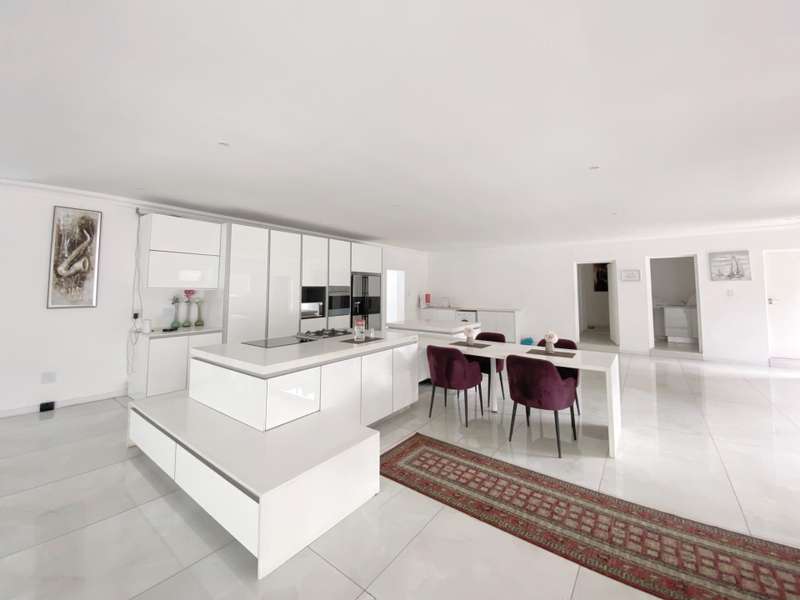 The 5 bedrooms are all en suite and offer generous proportions with space for a small living area. The 5 bathrooms feature high gloss, modern finishes. The open plan kitchen offers white Duco doors with Quartz tops and built in appliances, including oven, gas and electric stove top with space for appliances. The extended breakfast nook allows for effortless entertaining whilst cooking up a home-cooked meal.