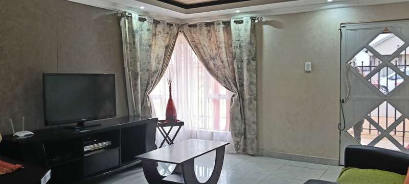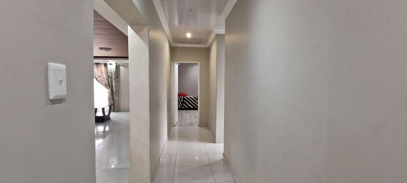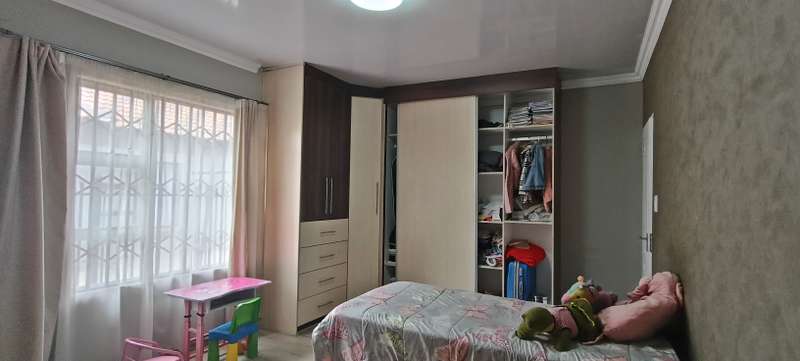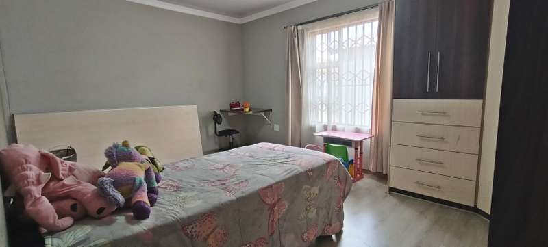 This beautifully designed modern 3-bedroom home is located in the renowned Arcata Estate, offering a blend of elegance and practicality. The property features a spacious open-plan living and dining area, fully tiled throughout, creating a seamless flow between spaces. The kitchen is well-equipped with ample cupboard space, stunning granite countertops, a center island, and glossy cabinets that add a touch of luxury. Three generously sized bedrooms feature laminated floors and built-in cupboards, with the main bedroom boasting a walk-in closet and a stylish en-suite bathroom. An additional full bathroom serves the other bedrooms. This secure home also includes glossy ceilings, adding to the sophisticated atmosphere. A fully paved garden for low-maintenance outdoor living. A single automated garage, along with covered parking for an additional car in front, offers convenient and secure parking solutions. Ideally located near top local schools, shopping malls, and fuel stations, this property is just a 15-minute drive from Braam Fischer International Airport, ensuring easy access for travelers. This is the key to your family's happiness!!!!