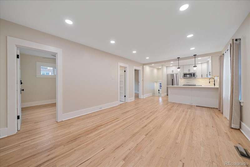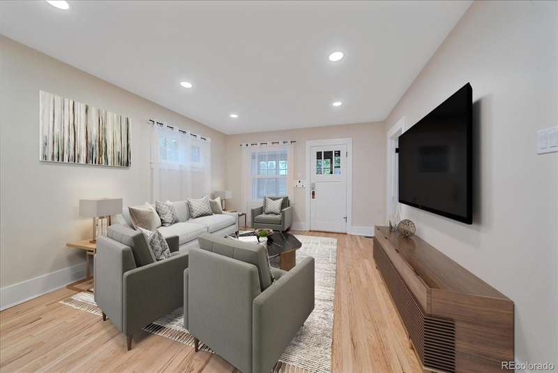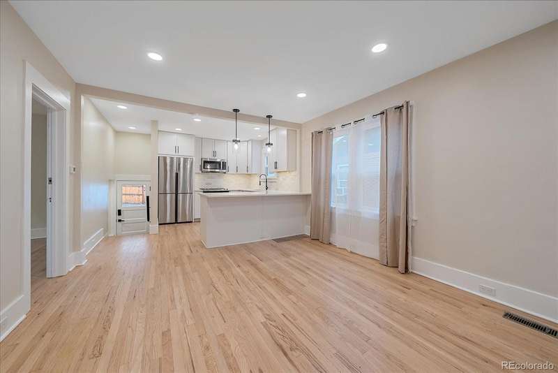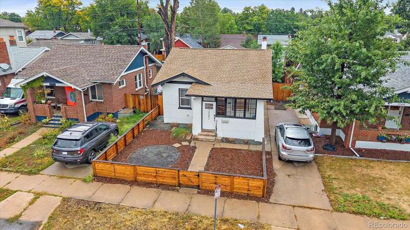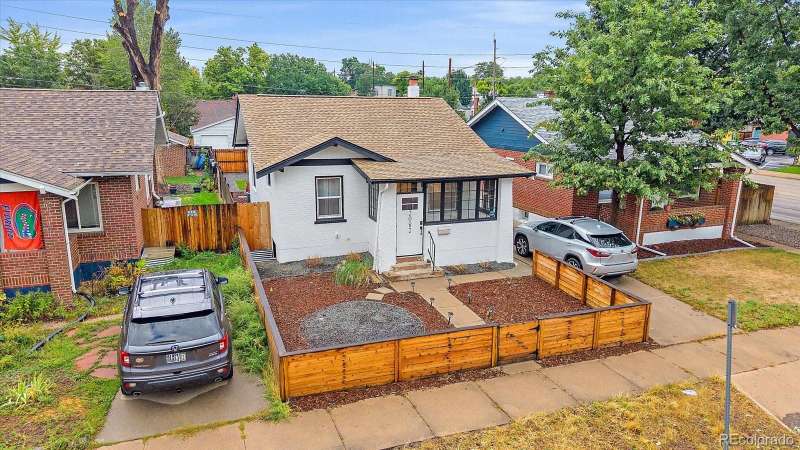 Seller says 'Make an offer', Short sale! Exceptional remodeled home blending timeless charm with modern designer touches! Step into a bright glassed-in sun porch that welcomes abundant natural lightperfect for morning coffee or evening relaxation. Inside, the custom kitchen is a showstopper with quartz countertops, stainless steel appliances, 42 cabinets, tile backsplash, pendant and recessed lighting, and gleaming hardwood floors. The open-concept main level features a spacious living and dining area, two bedrooms, and a beautifully updated full bath. Notice the newer windows throughoutadding comfort and efficiency. Downstairs, enjoy a rec room, laundry area, and utility room with updated mechanicals. A non-conforming bedroom offers flexible space for a home office, while a generous bedroom includes a stunning en-suite bath with dual sinks, barn door closet, and egress window. Step outside to a fully fenced backyard with a 20x10 east-facing covered patioideal for entertaining. Enjoy potential raised garden spaces, a detached 1-car garage, alley access with 2 additional parking spaces, plus a long front driveway. Fantastic location near Platt Park, light rail, RTD, Santa Fe, Hwy 285, and I-25. Move-in ready and designed for easy, stylish livingdont miss this one! Call about Short sale.