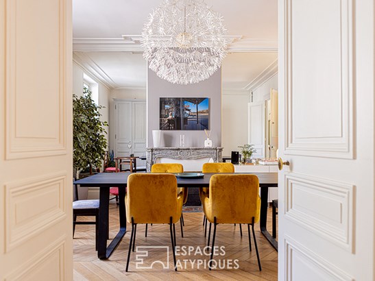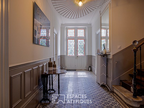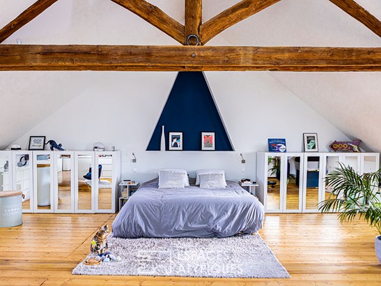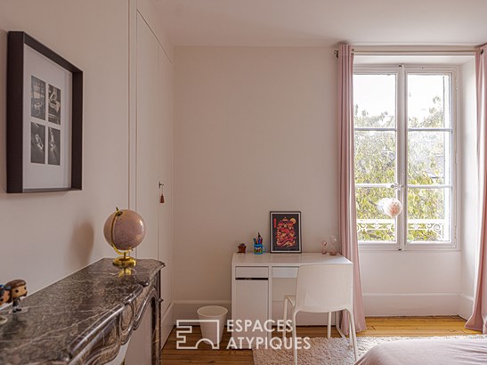In the heart of the Theatre district, in the absolute calm of a discreet street, this elegant 280 sqm property is revealed, enhanced by a complete renovation with impeccable finishes. From the entrance, the tone is set: Victorian fireplace, cement tiles, stained glass windows and original parquet floors exude the authenticity of the house. A vast hall distributes the living spaces bathed in light: the double reception room offers beautiful views of the garden, the independent kitchen, bright and functional, blends harmoniously into this ensemble. A bedroom, now used as a library, facing outwards, offers a true feeling of tranquility. The common thread of the house, the wrought iron staircase leads to the upper floors while a discreet elevator serves the first two levels, adding to the comfort of daily life. Organized around a large landing, the first floor offers three spacious bedrooms, one of which has a private shower room, as well as a large family bathroom. On the second and top floor, the master suite boasts exceptional volumes, notably with a cathedral ceiling reaching 4.20m. A relaxation area and an adjoining shower room. A true refuge at the top of the house. A landscaped garden with bucolic charm, hidden from view, enhances this exceptional building. 400 sqm of green space in the heart of the city. Around the shaded terrace are wisteria, fruit trees, a woodshed: A 30 sqm outbuilding completes this exterior. A private parking space in the immediate vicinity is included. A second is available at an additional cost. Just a stone's throw from renowned schools, food shops, transport, and the banks of the Loire, this residence seduces with its authenticity, its timeless elegance, and its ideal configuration for family life. A unique, confidential, and decidedly atypical property. ENERGY CLASS: C CLIMATE CLASS: C Estimated average amount of annual energy expenditure for standard use, established from energy prices for the year 2021, 2022, 2023: between EUR2,380 and EUR3,290 per year. Contact: Marie Beaureau 06 69 99 99 25 Commercial Agent (EI) RSAC ORLEANS: 939 335 386