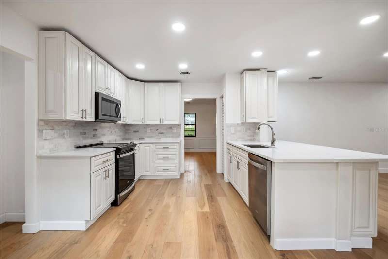 Welcome to this beautiful Pine Hill Estates home, boasting 4 bedrooms, a large flex room, 3 bathrooms, formal living and dining room, large family room contiguous with the spacious kitchen, a separate Laundry room, separate large utility room a covered back porch, open front porch, enjoy your morning coffee while admiring nature on the deck overseeing the back part of the sparingly wooded 1 acre lot. The updated home shows pride of ownership throughout - new water resistant wood flooring , new kitchen cabinets, quartz countertop and appliances, all remodeled bathrooms, tiled tub/shower walls, tile flooring and new quartz top vanity in the bathrooms. The flex room will adapt to almost any need- a large In-law suite with a walking closet, a play room with storage for toys, a home office with a library, a study room, or any other use you need. Zoned for top-rated Hidden Oak Elementary, Ft. Clarke Middle School, and Buchholz High School. Metal roof December 2023, A/C unit June 2016, W/H 2016. Home is also available for lease