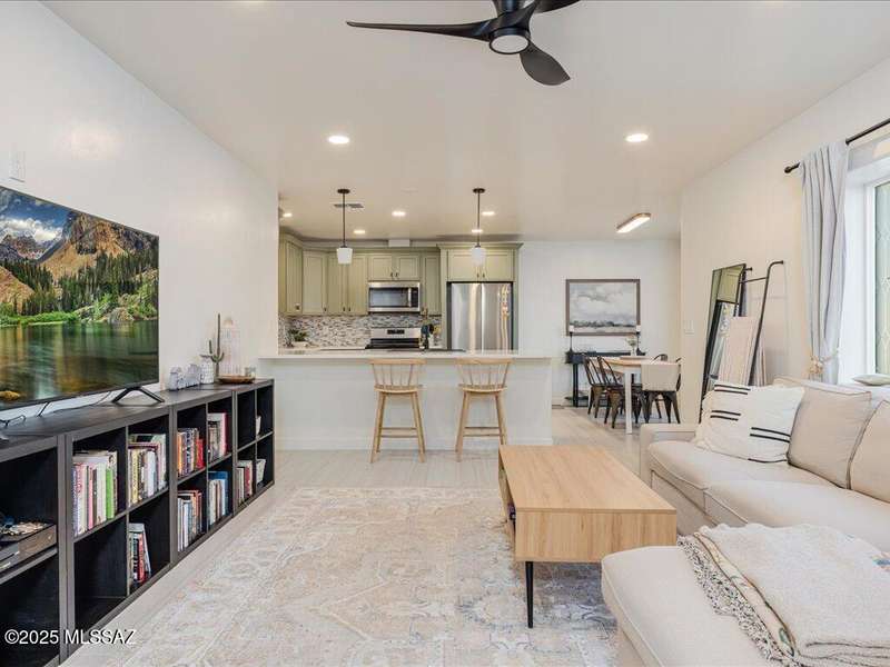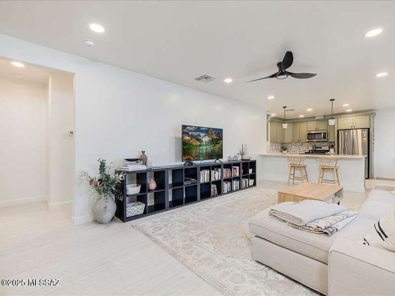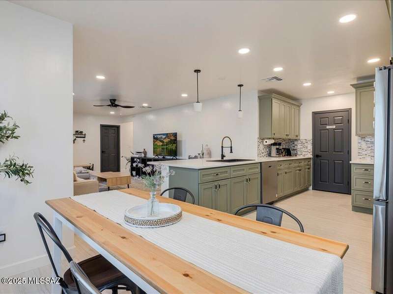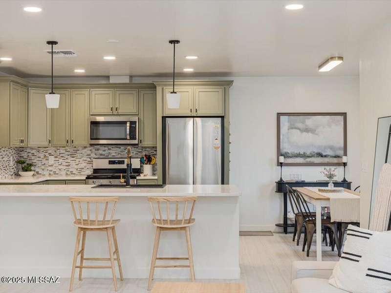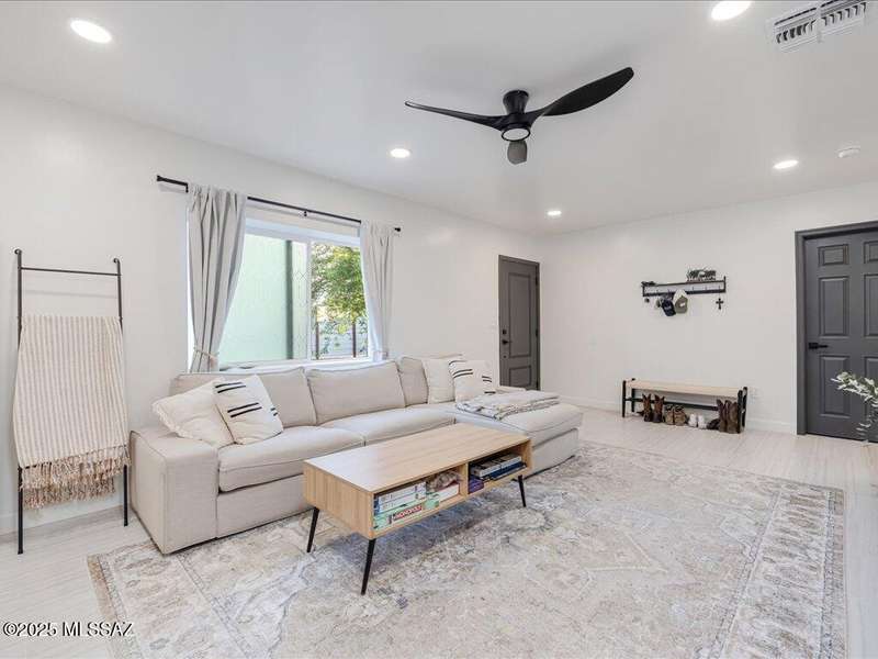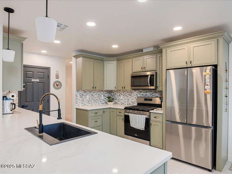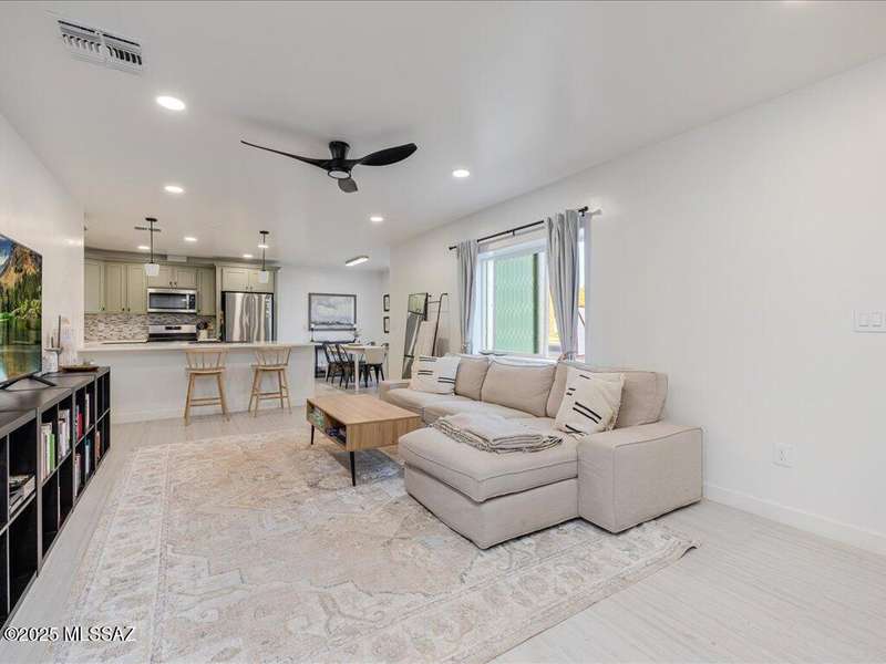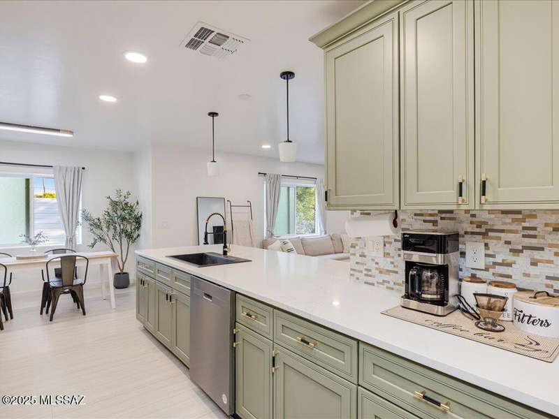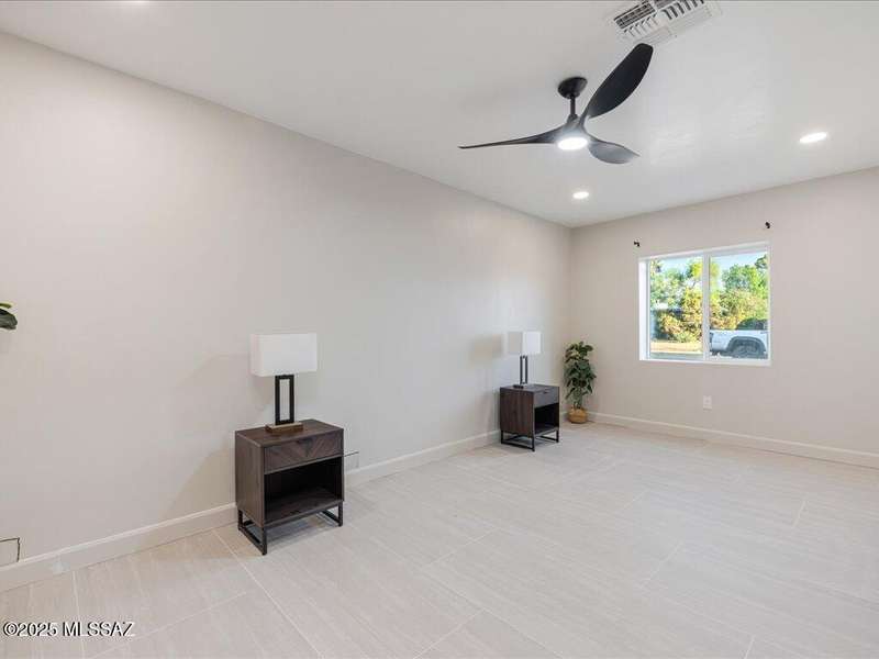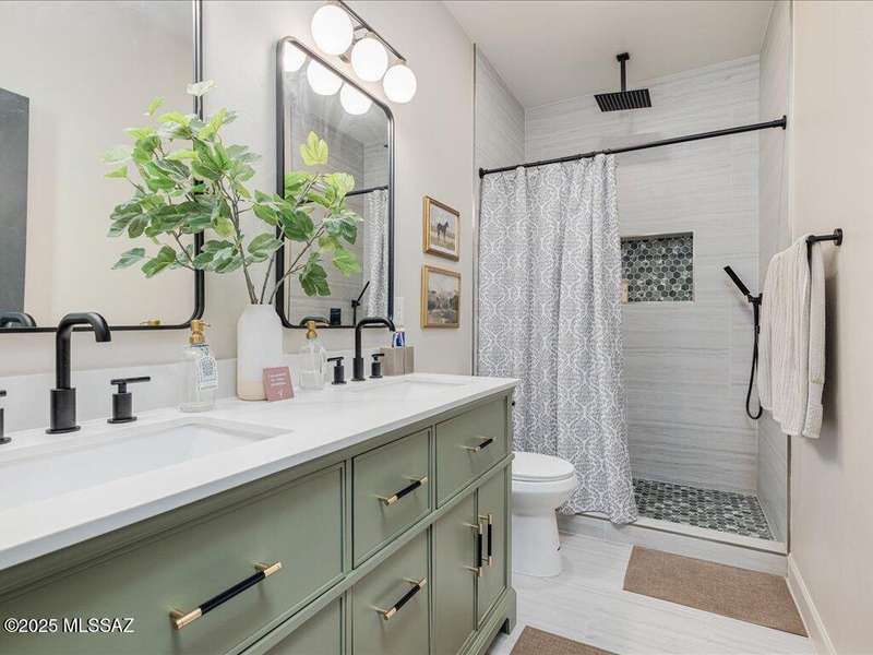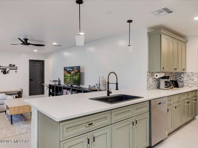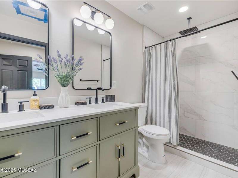 Welcome to this stunning 5-bedroom, 3-bathroom home with 2 primary bedrooms, where modern design meets everyday comfort. High ceilings and elegant porcelain tile floors guide you through the home, showcasing an open concept floor plan. The kitchen was fully renovated in 2024 with custom sage cabinetry, quartz countertops and stainless-steel appliances. Every detail was meticulously selected from the cabinet knobs to the lighting and plumbing fixtures and everything in between. This five-bedroom home offers two primary bedrooms fully equipped with ensuites and walk in closets; in addition to the three well sized bedrooms on the west end of the home with a shared bathroom.