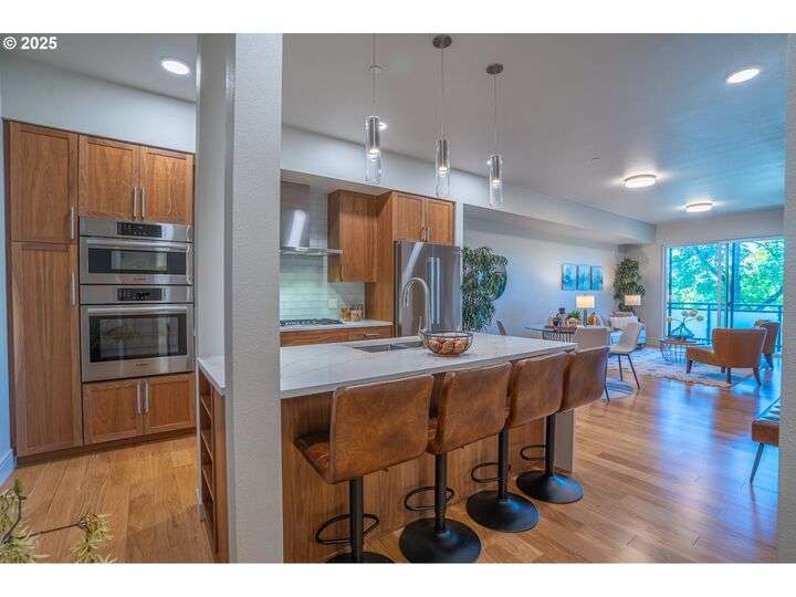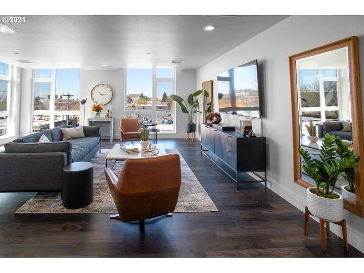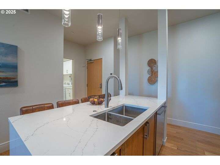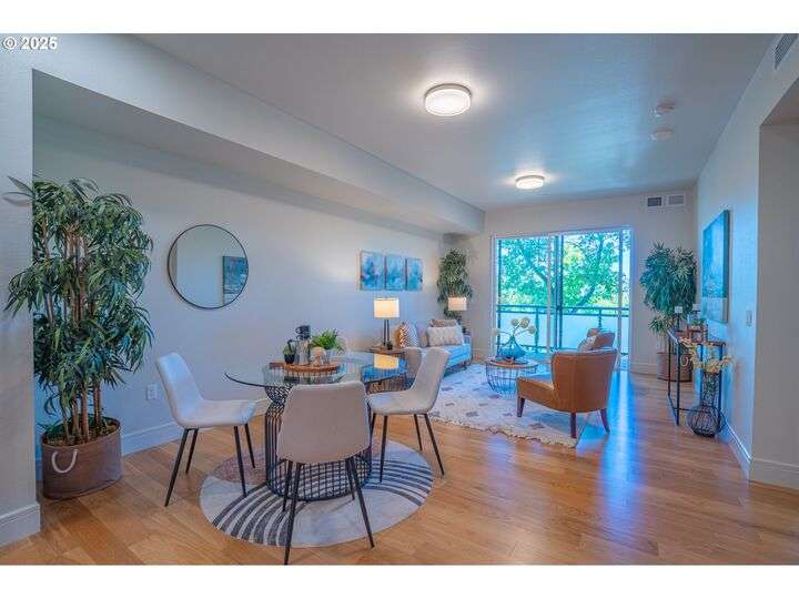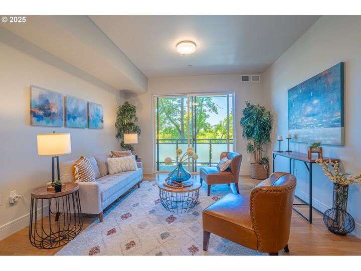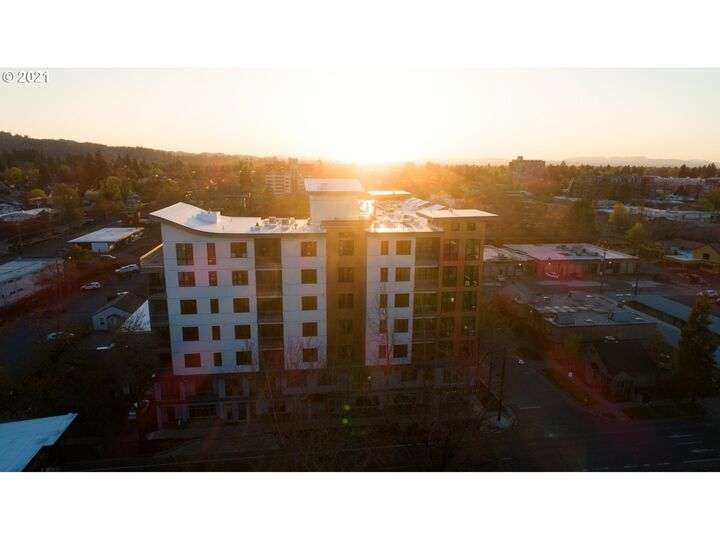 Nestled in Eugene's vibrant Midtown District, condo 404 represents contemporary urban living where sophisticated city life meets breathtaking natural beauty. This modern unit offers an unparalleled luxury experience that serves as more than just a home—it's an entrée into Eugene's most dynamic cultural environment. This innovative building which is also home to The Eugene Ballet, creates an extraordinary living situation where residents share their building with one of the region's premier performing arts organizations while having very private separation of space. From the rooftop patio, residents enjoy sweeping panoramic views stretching from the Coastal Range mountains to the scenic Coburg Hills, while below, world-class ballet brings artistic energy to everyday life. Located at the epicenter of the city's finest offerings which include world-class arts venues, eclectic shopping, and award-winning restaurants all within walking distance. The building's proximity to the University of Oregon campus adds intellectual vibrancy. Whether catching late dinner after gallery openings or enjoying craft cocktails at renowned establishments, vibrant nightlife unfolds steps from your door. The Midtown blends energy-saving design with stylish finishes, bringing together the excitement of city life, the calm of mountain views, and the creativity of local art—a unique place that reflects Eugene’s culture. IT IS COMMUNITY
