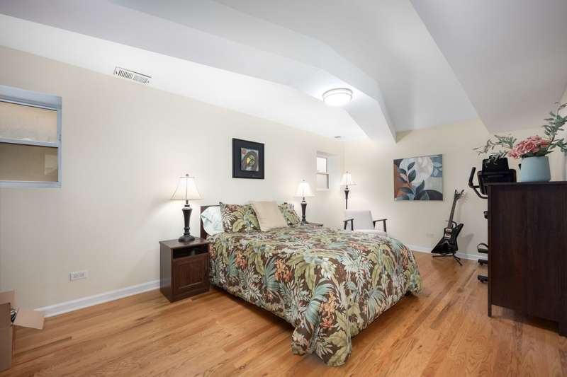 IT DOES NOT GET MUCH BETTER THAN THIS!!! This amazing 5 Bedroom plus office, 3 newer full bathrooms, duplex unit is located in Lincoln Square/Budlong Woods area. This 2,500 approx. space is A BUNGALOW IN A CONDO BODY. Amazing space, two living rooms (main and lower level), separate formal dining room, meticulously maintained with gleaming hardwood floors on both levels of living, arches, electric fireplace, bay windows, loads of light with southern exposure in dining room, 3 bedrooms on first floor (one en suite) and 2 bedrooms in lower level, flexible floorplan (one bedroom can be used as exercise room), spectacular family room, open office with built-in desk, laundry room, storage, low-maintenance front and backyard, wrought-iron fencing in front and back. Kitchen features all the Bells and Whistles a true chef would want with built-in kitchen table (so cool). Exterior features landscaped areas, 1 garage parking spot with an EV charger. Inclusion is freezer and iron art work above the fireplace. Area amenities are Nature Center, Lincoln Square, Andersonville, great restaurants, parks, health club, and so much more. Too good to be true. LIVE LARGE!!!!