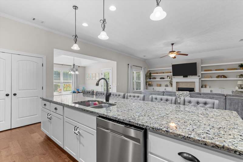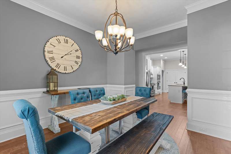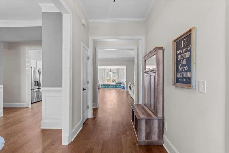 This beautiful 4-bedroom, 3-bathroom home showcases a thoughtful split floor plan, blending spaciousness with privacy. Step into a grand foyer that sets the tone leading you into an expansive open-concept living area. The home features rich hardwood flooring throughout the main living spaces, perfectly complemented by custom crown molding that adds a touch of sophistication in every room. At the heart of the home is a dream chef's kitchen, complete with a massive island, three pantries, and ample space for entertaining. Two fireplaces-one in the living room and another in the primary bedroom-add cozy charm and warmth. Enjoy outdoor living year-round with both covered front and rear porches, ideal for relaxing mornings or evening gatherings. With exceptional craftsmanship and premium details at every turn, this home is truly beautiful. Don't miss your chance to make 458 Bridle Path Rd your next home! Schedule your showing today.
