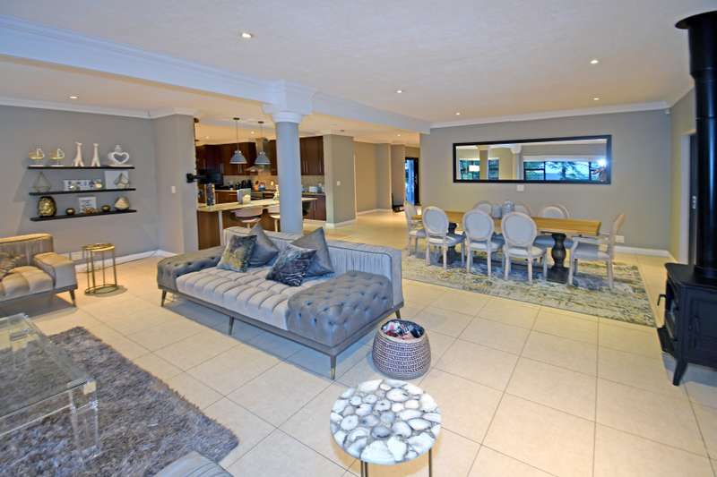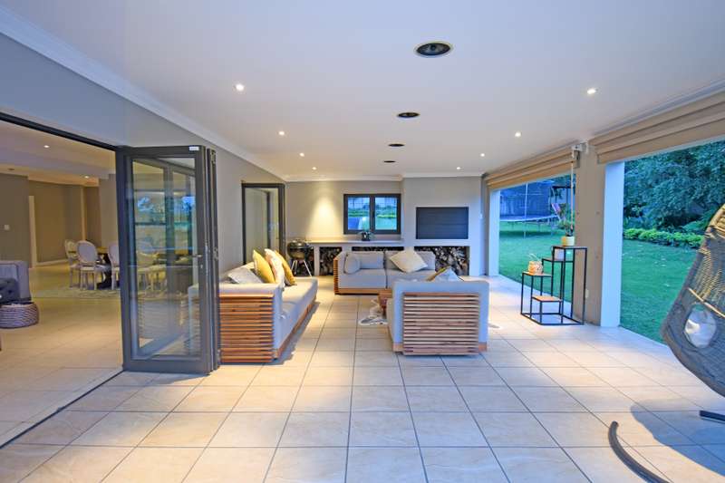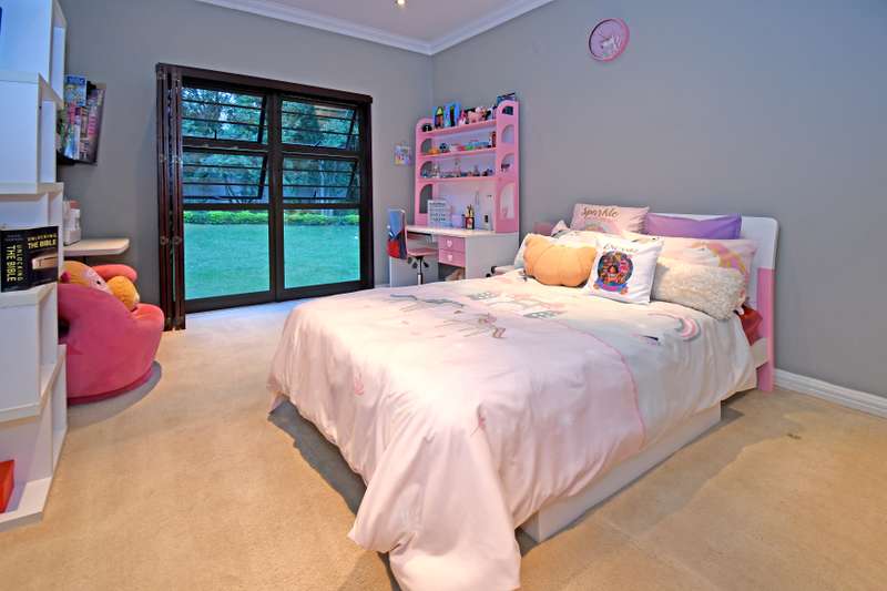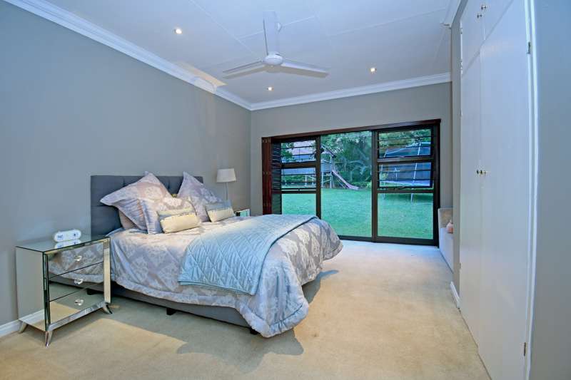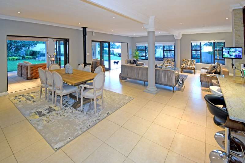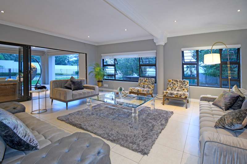 Welcome Home! Situated within walking distance to the Hamilton Park in a boomed off road in Bryanston East, this beautiful family home on an acre with a tennis court offers the optimal Bryanston lifestyle. Great for a young family and for the those who like to entertain. Expansive, open plan receptions leading to a large patio with a built-in braai androll down blinds overlooking an irrigated garden with a Boma area & Tennis court. Eat-in kitchen with an additional breakfast area, open plan dining room (with a Morso fireplace) & lounge, plus a separate cozy family room (also with a fireplace) & a private study / home office. Accommodation consists of 5 bedroom suites including a large main with its’ own lounge and access to the garden as well as a separate guest room (also en-suite). Beautiful, mature garden with a borehole, automated irrigation system and JoJo tanks. Sparkling Pool, Tennis court & Cricket net plus a beautiful Boma / Braai area add to this homes’ outdoor entertainment options and great space for the family. Double garage, double carport and lots of secure guests parking space. Staff suite with own bathroom. Motivated Seller has already bought elsewhere and will look at all market related offers!