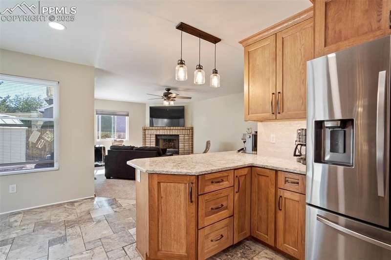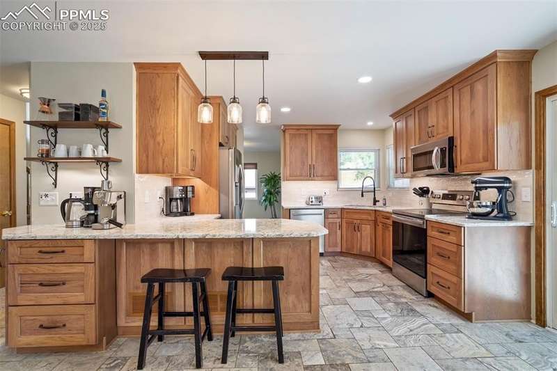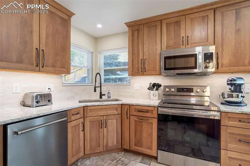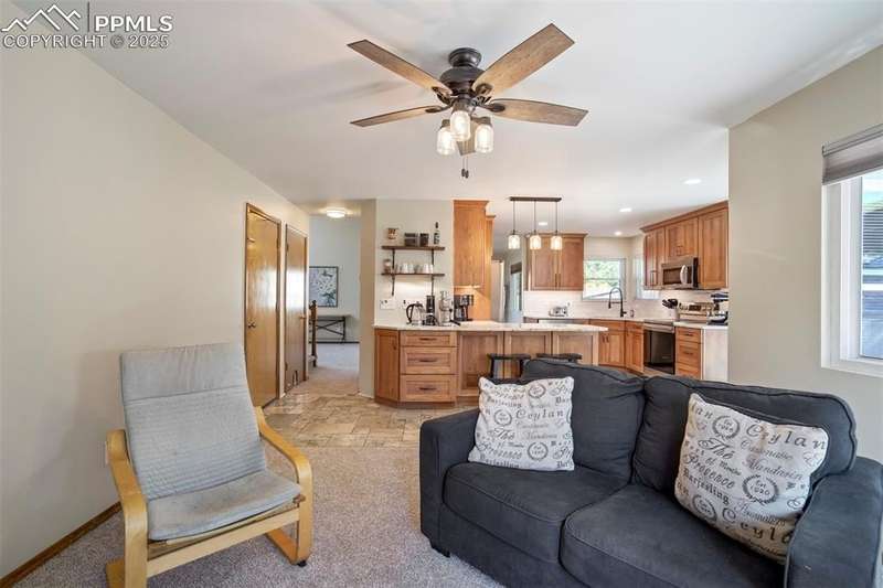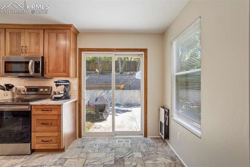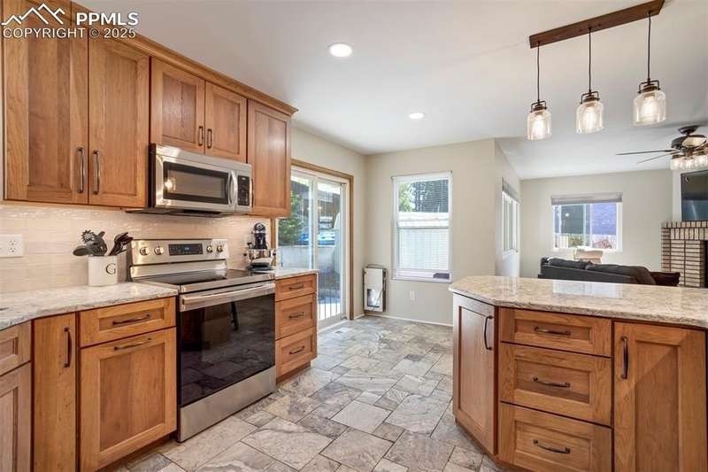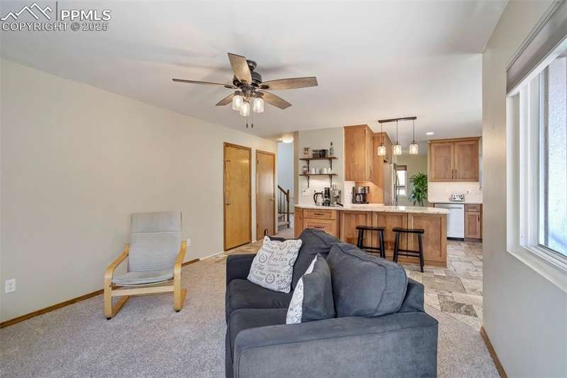 Beautiful Setting on this Superb & Lovely Home & Property w/Mtn. Views and Nice Curb Appeal Backing to Open Space in School District 20!!! Garden of the Gods Views from Front Patio!!! New Carpet & Paint on Interior, Along w/New Roof & Furnace!! Enter into Main Level with Open/Inviting & Spacious Living Room w/High Ceilings and Spacious Dining Room!! Large Remodeled Kitchen w/SS Appliances, Tile Floors, Quartz Counters & Tile Backsplash & Semi Custom Pecan Cabinets that Overlooks a Cozy Family Room w/Gas Fireplace both Walking Out to a Private 37x28 Back Patio w/Terraced/Fenced Yard!!! Upper Level Boasts a Large Master Bedroom w/Private 5pc. Bath & w/In Closet along w/2 Extra Spacious Bedrooms with Mountain Views w/Full Bath & Laundry!! Great Lower-Level w/2nd Rec/Family Room, Exercise Area, 2 Large Bedrooms & Really Nice Remodeled Bath!! Home Has Radon System in Place & is a Perfect Home for the Large Family & Very Functional, but yet Having Some Separate Privacy Throughout!!