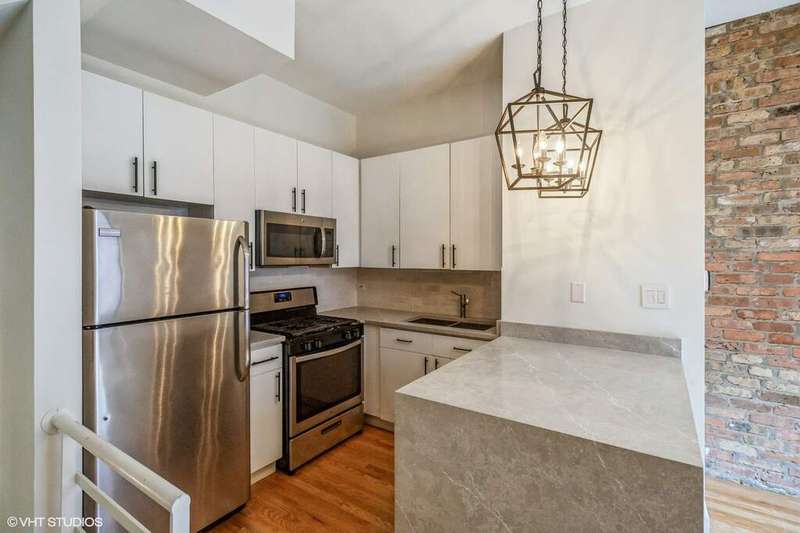 Prime Bucktown/Wicker Park Location! Stylish and updated 1 bed / 1.1 bath over 3-levels tucked on a sought-after tree-lined street. Enjoy a private gated courtyard entrance with a little front yard that is convenient for pets or relaxing outside, plus an attached garage for ultimate convenience in these Chicago winters. The airy, open layout boasts tall ceilings with lots of exposed brick, big picture windows, and a cozy corner fireplace. The kitchen shines with stainless steel appliances, white cabinetry, beautiful waterfall countertop and nice tiled backsplash. Upstairs, the bright bedroom/bathroom suite features a walk-in closet with laundry right where you want it-on the top floor! A good value just a few steps to parks, shops, restaurants, the 606 trail, bike routes, and easy transit.