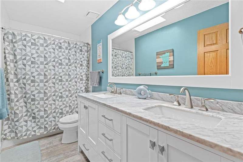 Looking for a home that offers the perfect backyard retreat in the sought after Mounds View school district? Look no further, this 3-bedroom, 2-bathroom home offers all of that and more. With a large fenced in backyard, mature trees and massive shed you will have plenty of room to run around, entertain and store all your favorite things. Step inside and you are greeted with a large living room that opens to the dining room and kitchen. Kitchen has beautiful hardwood floors, granite countertops, and stainless-steel appliances steps away from your large deck. 2 bedrooms upstairs with fresh paint and an updated full bath equipped with tile floors, dual vanity and marble countertops round out the upstairs. Lower level features a large bedroom with a walk-in closet and ensuite bathroom with heated floors, dual vanities, tiled walk-in shower and separate tub and granite countertops. Large unfinished space perfect for lower-level family room or additional bedroom. Oversized 2 car garage with great hidden storage throughout. This home is ready to move in and enjoy!