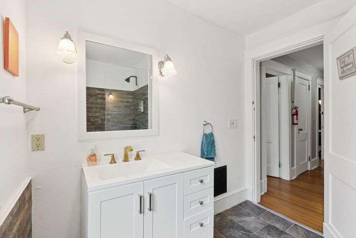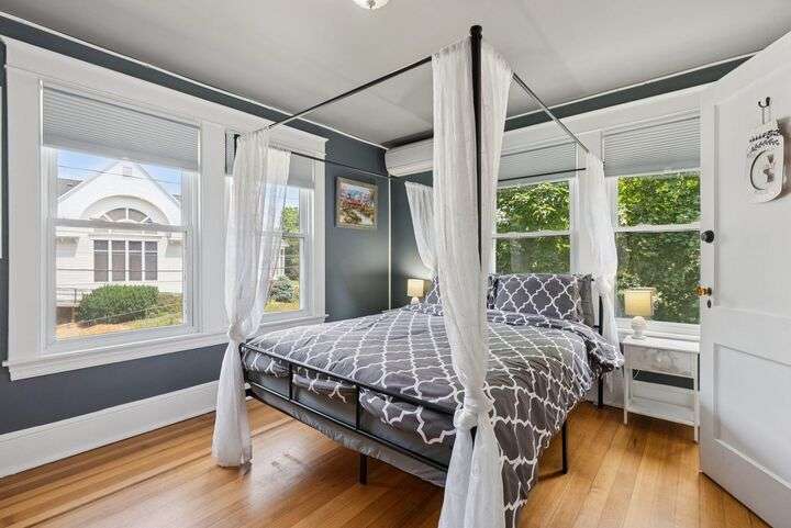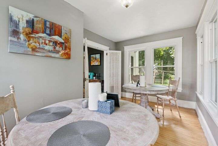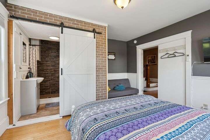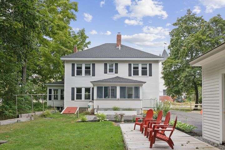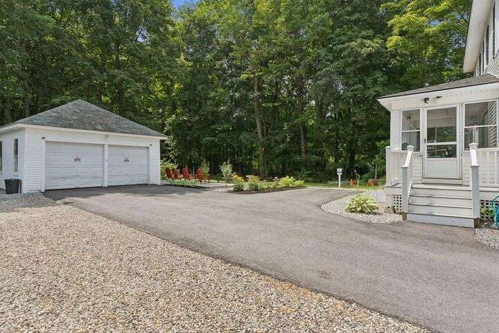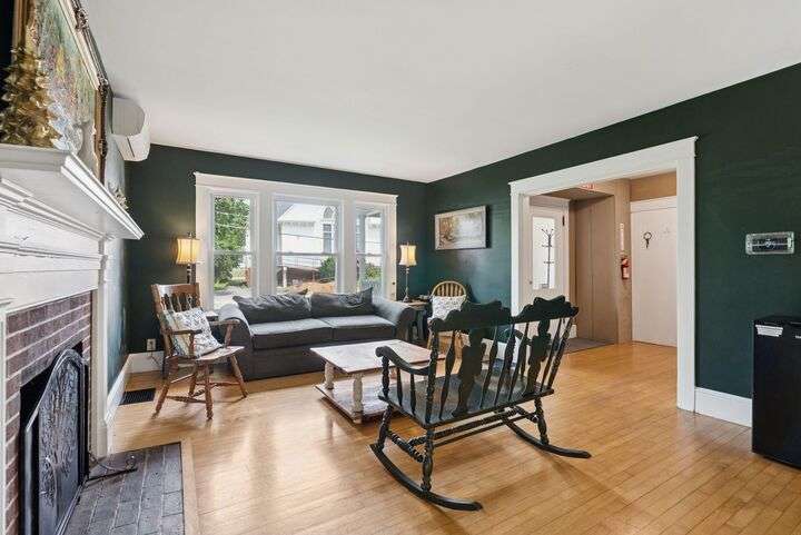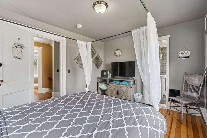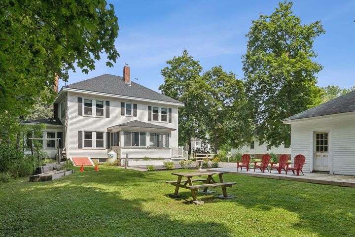 Don't miss this rare opportunity to own a turn-key Bed & Breakfast—or convert it into a spacious single-family home! Currently operating as a successful four-bedroom B&B with a 5-star rating for the past three years, this property can also serve as a single family residence. As a B&B, each guest room comes fully furnished, featuring a private full bath, individual TVs, and its own A/C unit for maximum comfort. Simply add your business name and you're ready to welcome guests from day one. Situated on a beautifully maintained .9-acre lot, the property offers five parking spaces on a newly paved (2024) driveway, plus a two-car garage with extra workspace. The backyard, with its own wooded backdrop, offers peace and privacy—yet you're right in the heart of Gray's Center Proper, just steps from shops, dining, and gas stations. The location is unbeatable: only 12 minutes to Windham and under 30 minutes to Portland, with easy access from the Turnpike. Built in the 1920s, this charming home retains its antique character while boasting modern updates—ensuring no major repairs are on the horizon.