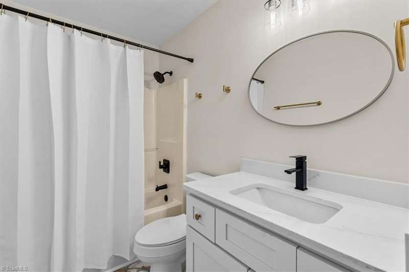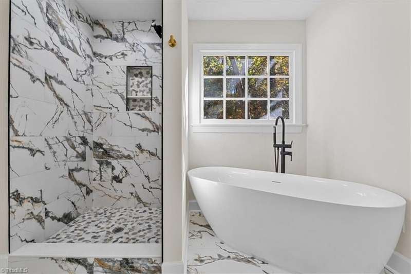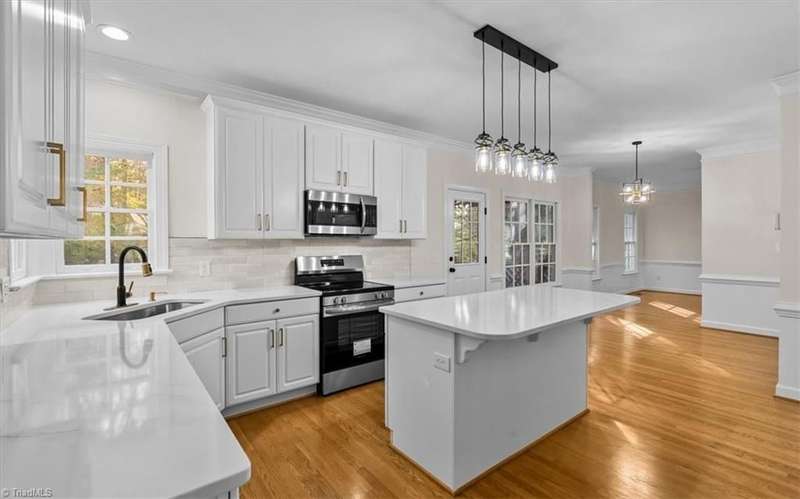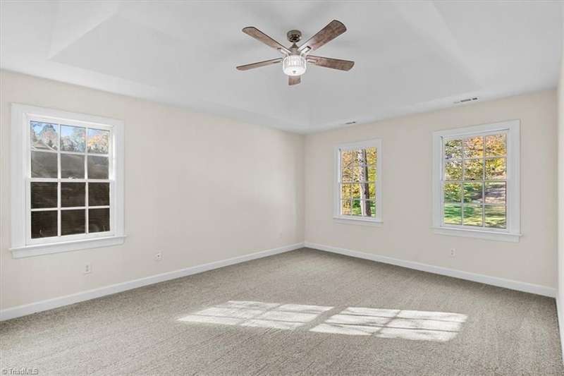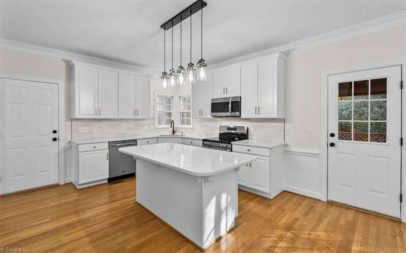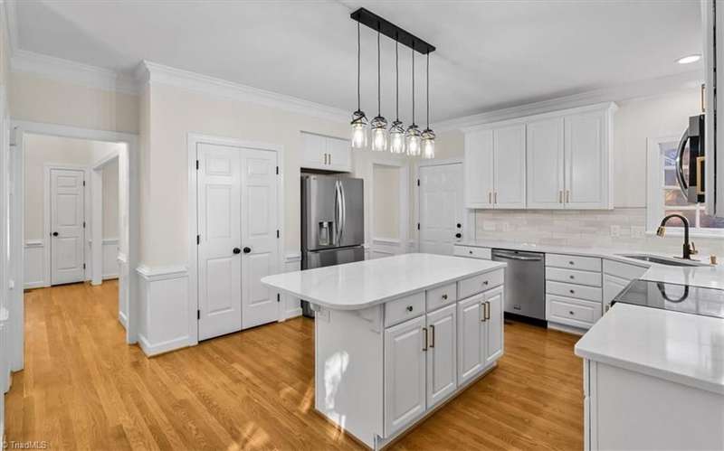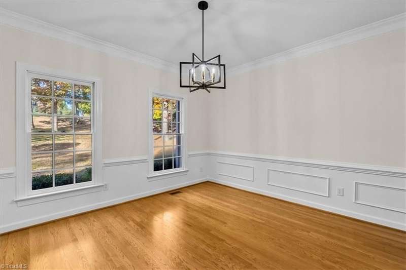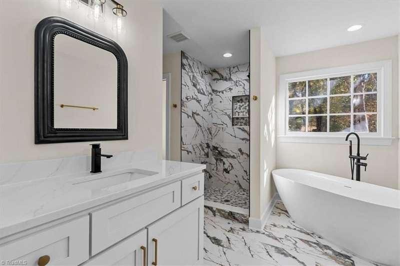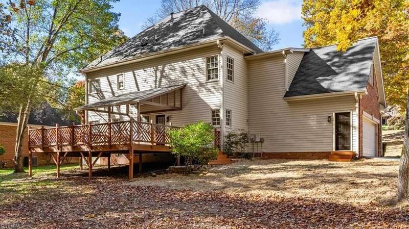 This three-side Brick home has been masterfully updated! All original wood floors on the main level have been refinished and additional wood floors were added on the hallway upstairs. All bedroom carpeting is also new! The kitchen has all new tile backsplash that coordinates beautifully with the new solid surface counters. The kitchen also includes a new oven/range and refrigerator, a nice large farm sink and central island with plenty of additional cabinetry. The spacious primary includes his & her closets as well as a freestanding soaking tub, separate shower, his/her sinks with all beautiful new counters and tile floors and shower walls. The additional full bath upstairs and half bath have several updates too! New lighting and plumbing fixtures throughout, as well as fresh paint! The very large deck lends itself to entertaining and provides shaded and unshaded areas, as well as a wonderful wooded creek view! County taxes. Summerfield/Northern/Northern schools.