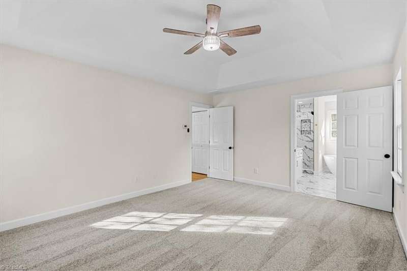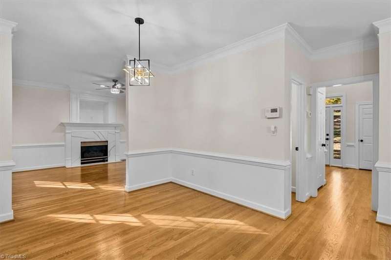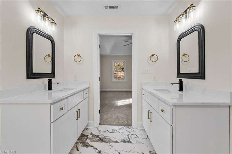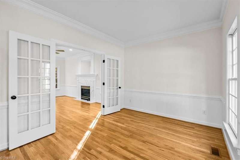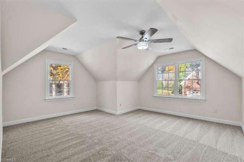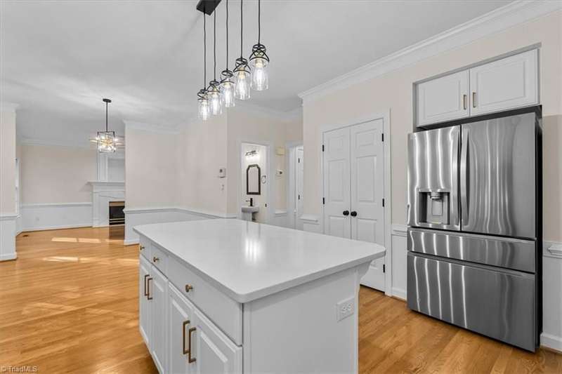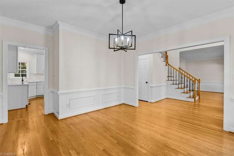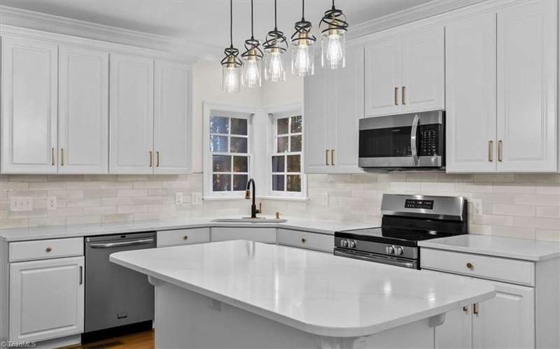This three-side Brick home has been masterfully updated! All original wood floors on the main level have been refinished and additional wood floors were added on the hallway upstairs. All bedroom carpeting is also new! The kitchen has all new tile backsplash that coordinates beautifully with the new solid surface counters. The kitchen also includes a new oven/range and refrigerator, a nice large farm sink and central island with plenty of additional cabinetry. The spacious primary includes his & her closets as well as a freestanding soaking tub, separate shower, his/her sinks with all beautiful new counters and tile floors and shower walls. The additional full bath upstairs and half bath have several updates too! New lighting and plumbing fixtures throughout, as well as fresh paint! The very large deck lends itself to entertaining and provides shaded and unshaded areas, as well as a wonderful wooded creek view! County taxes. Summerfield/Northern/Northern schools.