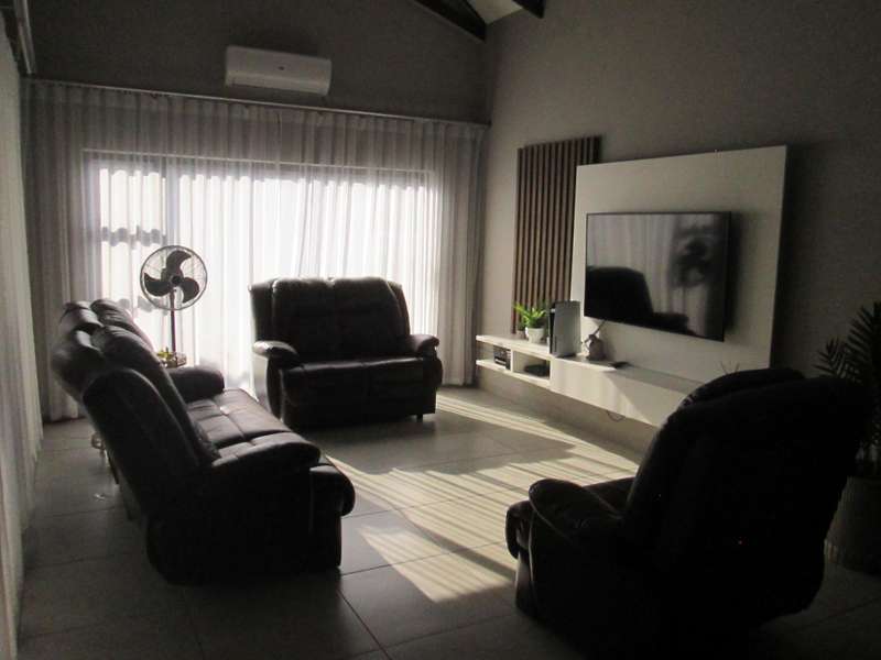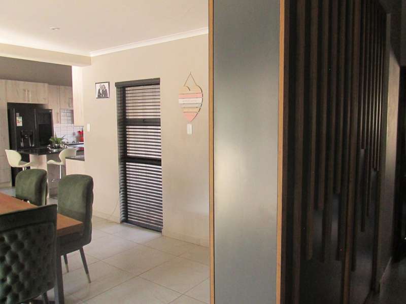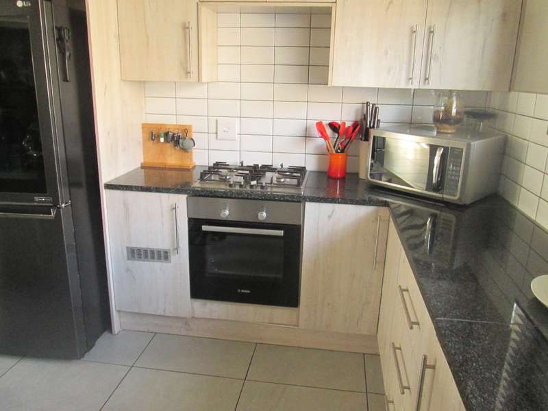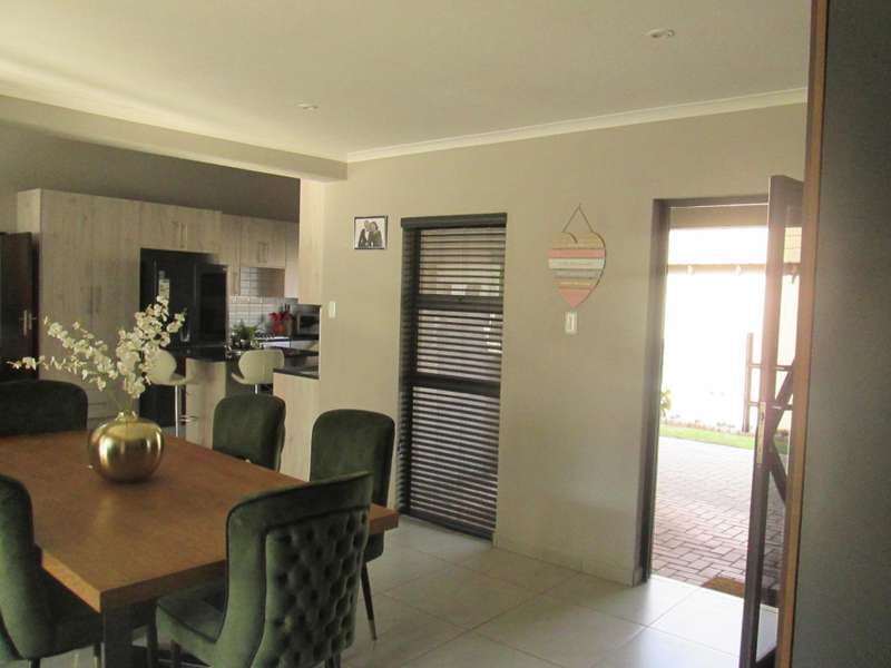 3 Bedroom simplex within an Estate One of only two - 3 Bedroom simplexes within this sectional title complex. The home is 18 months old and looking for another family to welcome. The main bedroom is en-suite, while the other 2 bedrooms share a full bathroom. An openplan kitchen with a central "island' allows for interaction with visitors and family alike and flows seamlessly into the lounge/dining and covered patio area. A "louverdeck" system over the patio, which contains a built-in braai, can be opened/closed to let in sunshine or keep out the rain. All units are fitted with "smart" prepaid meters for water as well as electricity. Exceptionally well priced - dont delay to view - call today.