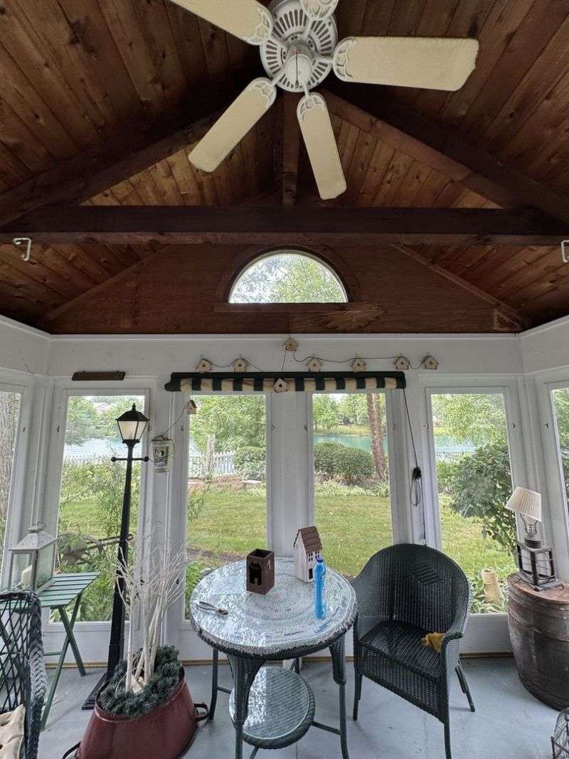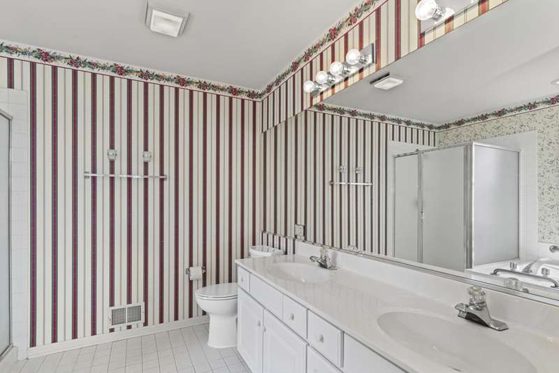 ON the water! 3-Season room overlooks the large pond & professionally landscaped, fenced backyard. Water views from 2 bedrooms, study/loft & the kitchen sink. Timed lighting system beautifies the already tranquil setting. Second pond in front! Do you need a 1st floor bedroom/in-law arrangement? All set, including the step in jetted tub/shower. There's a fenced, brick-paved let the dog out area (to keep your grass nice). Oak treaded staircase. 3-Season Room has full length, removeable windows & screens. Low maintenance composite fencing. Loft easily becomes bedroom #5. Centrally located in the subdivision reduces traffic noise. Oversized downspouts tie into drainage system keeping the home high and dry. Large Aprilaire home filter system for extra air purification. Basement height 8.5-9' tall and 3 escape windows. Very good condition, non-smoking home. Lower pricing reflects wallpaper and kitchen updating. Note: This is an estate. Seller exempt from disclosures and prefers as-is sale. Closing flexible. Dry basement. Executor hired U.S. Waterproofing on 08/07/25 to professionally seal most cracks whether they needed it or not. Receipt attached.