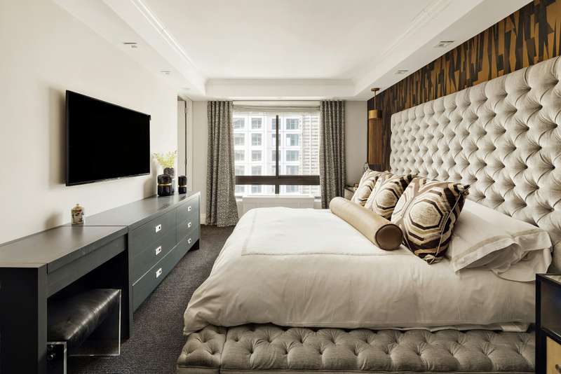 Completely renovated, this high floor one bedroom, one bathroom plus powder room home is superbly designed. The detailed interior embraces a mix of materials to create understated luxury. ; The geometric marble floors, tile fireplace accent wall, custom crown moldings, and textured wallpapers create visual interest to the residence. ; With two walls of windows to maximize the city views and natural light, there is a sense of airiness to the open floor plan. The top-of-the line kitchen seamlessly extends the living/dining area with its custom wood cabinets in the neutral color pallet and contrasting stone countertops/backsplashes. The primary bedroom functions as a luxurious hotel suite with its spa-like bathroom and wall of custom closets. For additional luxury, the powder room is a perfectly detailed jewel; and for convenience, there is a washer/dryer. Totally move-in ready, rarely does an apartment of this quality become available.