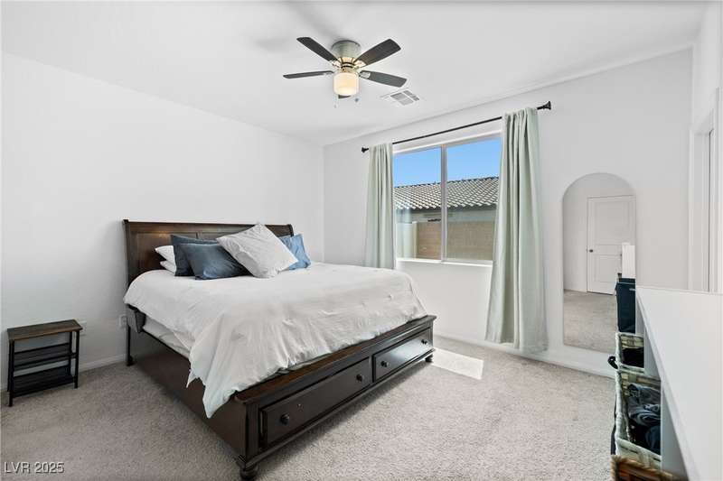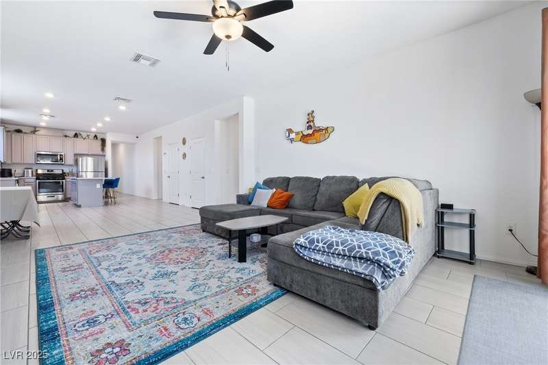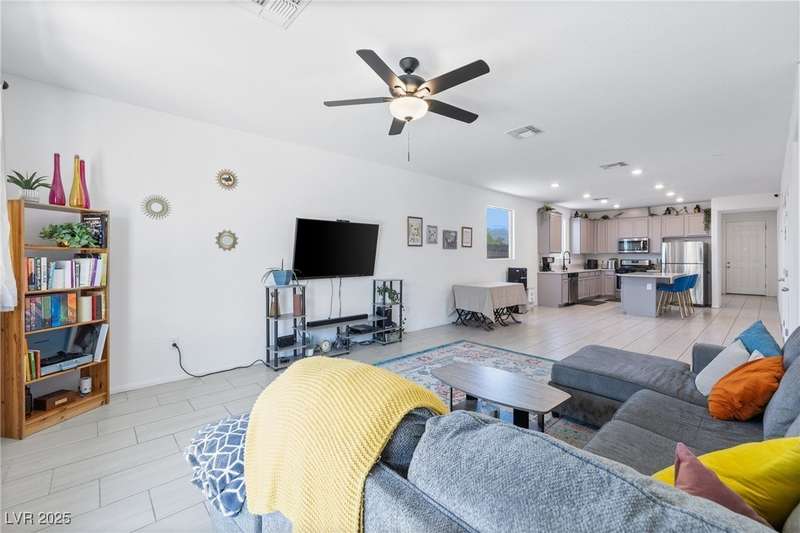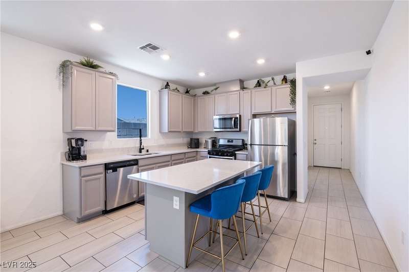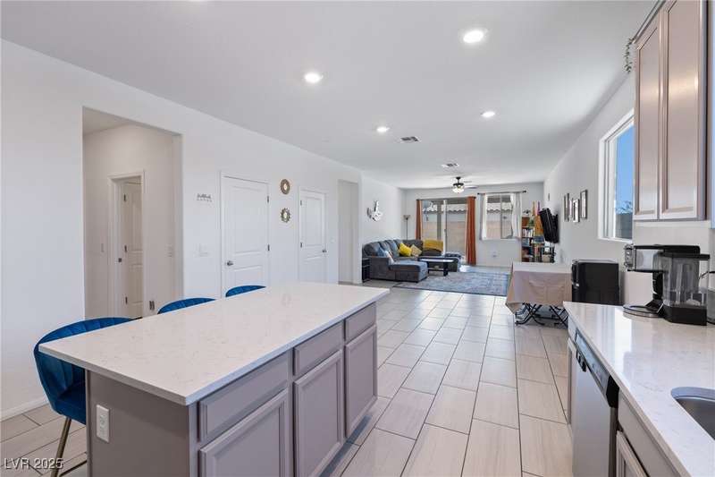 Beautifully maintained 3-bedroom, 2-bathroom single-story home, perfectly situated in a quiet and desirable neighborhood in Las Vegas. This inviting residence offers a spacious open-concept layout with an abundance of natural light, making it ideal for both everyday living and entertaining. Step inside to find a generously sized living room that flows seamlessly into the dining area and updated kitchen, complete with stainless steel appliances, quartz countertops, and plenty of cabinet space. The primary suite features a walk-in closet and a private en-suite bathroom for your comfort and convenience. Modern finishes with a twist of contemporary design. The backyard is a blank canvas ready for your creative minds to customize your very own entertainers paradise. Covered patio. Low HOA. Conveniently near freeway access, hospitals, and schools. Schedule your showing now! This will go quick!