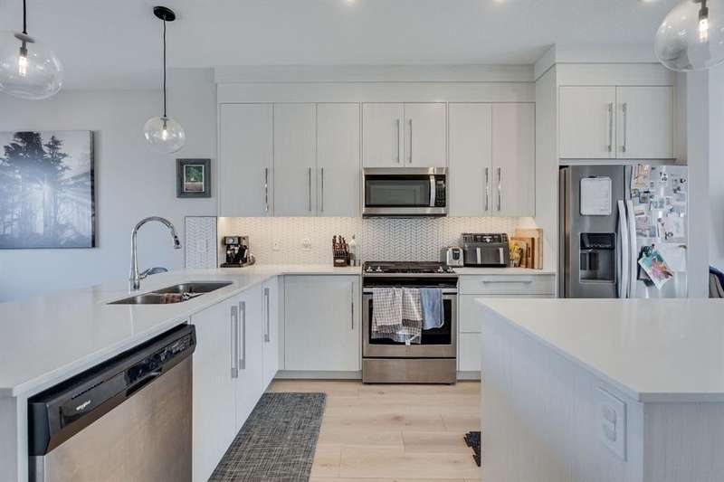 This semi-detached home is purpose-built for strong rental potential in one of Calgary’s fastest-growing SW communities. With a legal secondary suite and double detached garage, it’s a turnkey opportunity to generate dual income streams from Day 1. The main suite offers 3 bedrooms, 2.5 baths, and bright open-concept living with 9’ ceilings, wide-plank vinyl flooring, and quartz countertops. Durable finishes, stainless steel appliances, and a gas stove make it tenant-friendly while still feeling modern and attractive. Upstairs includes a loft, laundry, and private primary ensuite—ideal for long-term family tenants. The lower level is a fully self-contained legal one-bedroom suite with its own side entrance, full kitchen with quartz counters, 4-piece bath, and in-suite laundry. High ceilings and oversized windows make the space feel bright and open, increasing rental appeal. Creekstone is one of Calgarys newest communities with close proximity to schools, shopping, South Calgary Health Campus (Calgary’s newest hospital), and major roadways all nearby—ensuring strong tenant demand. With two rentable units, a fenced yard, and low-maintenance finishes throughout, this property is a smart addition to any portfolio.
