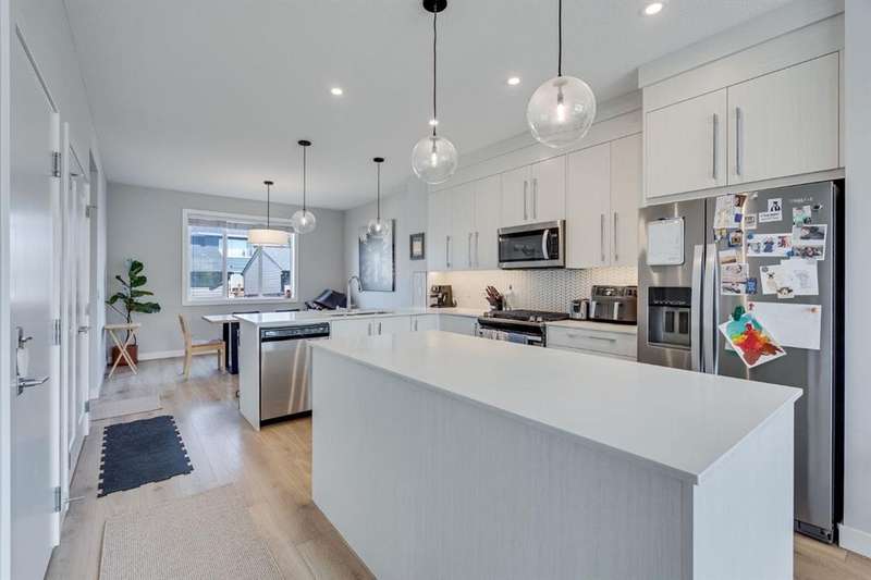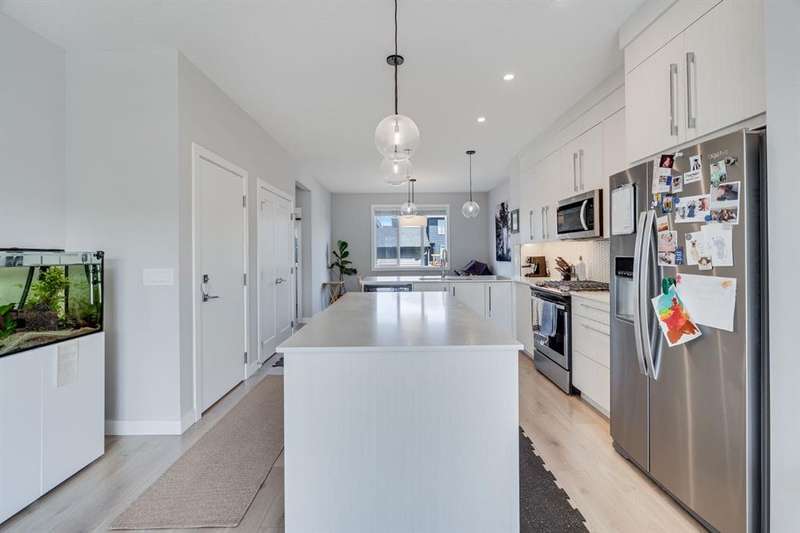 This semi-detached home is purpose-built for strong rental potential in one of Calgary’s fastest-growing SW communities. With a legal secondary suite and double detached garage, it’s a turnkey opportunity to generate dual income streams from Day 1. The main suite offers 3 bedrooms, 2.5 baths, and bright open-concept living with 9’ ceilings, wide-plank vinyl flooring, and quartz countertops. Durable finishes, stainless steel appliances, and a gas stove make it tenant-friendly while still feeling modern and attractive. Upstairs includes a loft, laundry, and private primary ensuite—ideal for long-term family tenants. The lower level is a fully self-contained legal one-bedroom suite with its own side entrance, full kitchen with quartz counters, 4-piece bath, and in-suite laundry. High ceilings and oversized windows make the space feel bright and open, increasing rental appeal. Creekstone is one of Calgarys newest communities with close proximity to schools, shopping, South Calgary Health Campus (Calgary’s newest hospital), and major roadways all nearby—ensuring strong tenant demand. With two rentable units, a fenced yard, and low-maintenance finishes throughout, this property is a smart addition to any portfolio.