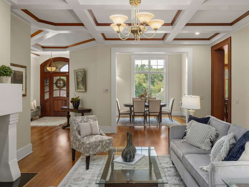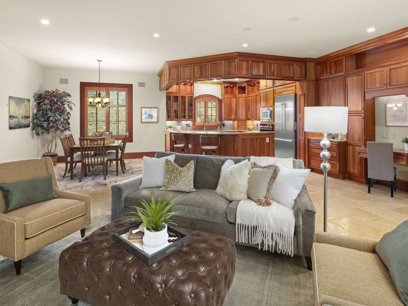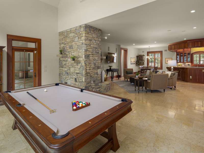 Welcome to this extraordinary residence, where timeless architecture and refined finishes come together to create an unparalleled living experience. From the moment you arrive at the gated entry, this exquisite estate makes a striking first impression. The main level offers over 4,000 square feet of luxurious living space, designed with an open-concept flow and an abundance of character. Soaring coffered ceilings, rich hardwood floors, and impeccable craftsmanship set the tone. The gourmet kitchen is a chef's dream and seamlessly connects to the dining room, breakfast room, and great room. Here, an impressive floor-to-ceiling stone fireplace anchors the space, extending into the billiards room with a full bar which is perfect for entertaining. The primary wing is a true gem, featuring a large suite with dual baths, his & hers walk-in closets, a spacious walk-in shower and a soaking tub. Also included is a private study, and a dedicated laundry room, a cozy sitting room with a see-through fireplace which opens to a second living area and a private guest suite with a full bath. Upstairs, you'll find another guest ensuite, a family room (which could function as a bedroom) and a private sauna/full bath. The lower level offers versatile heated spaces including multiple workshops, a craft room, fitness (or theatre) room, and full bath. Step outside to the covered stone terrace and enchanting English garden, where relaxation and elegance blend seamlessly. This remarkable home is a perfect balance of luxurious comfort, thoughtful design, and timeless sophistication, ideal for both private living and grand entertaining.
