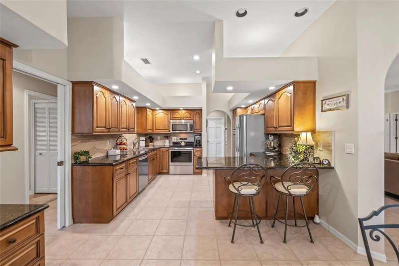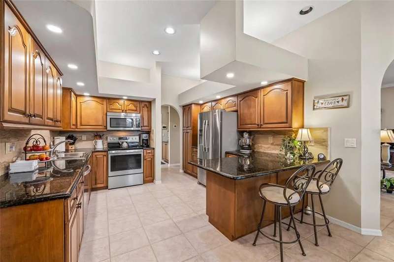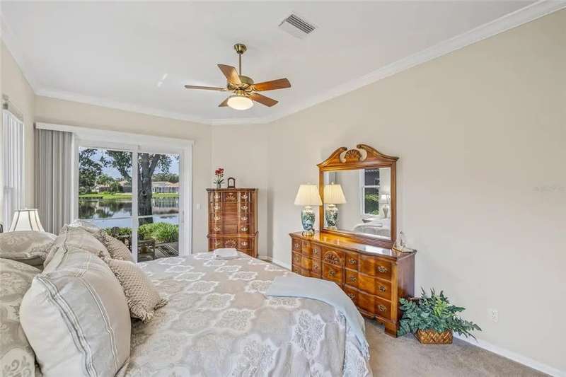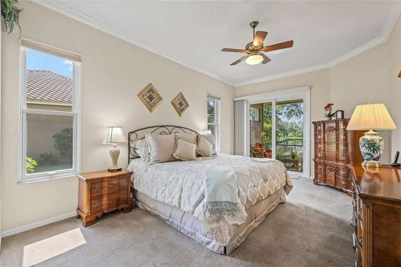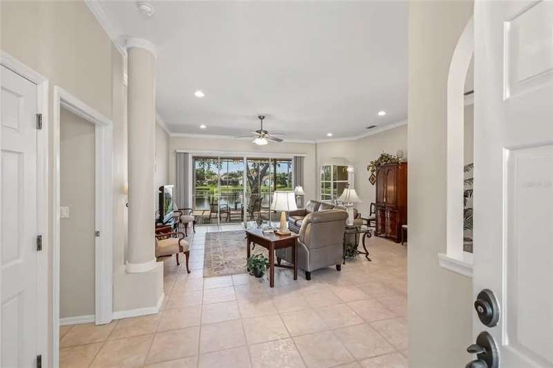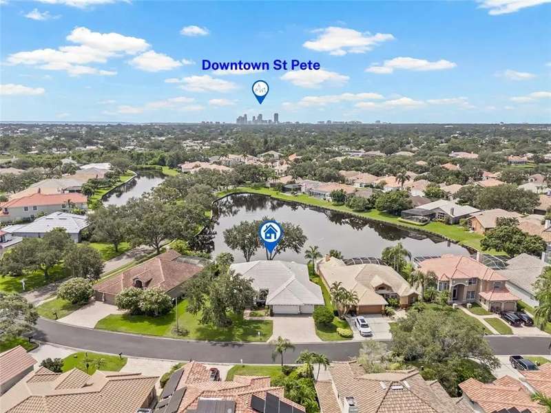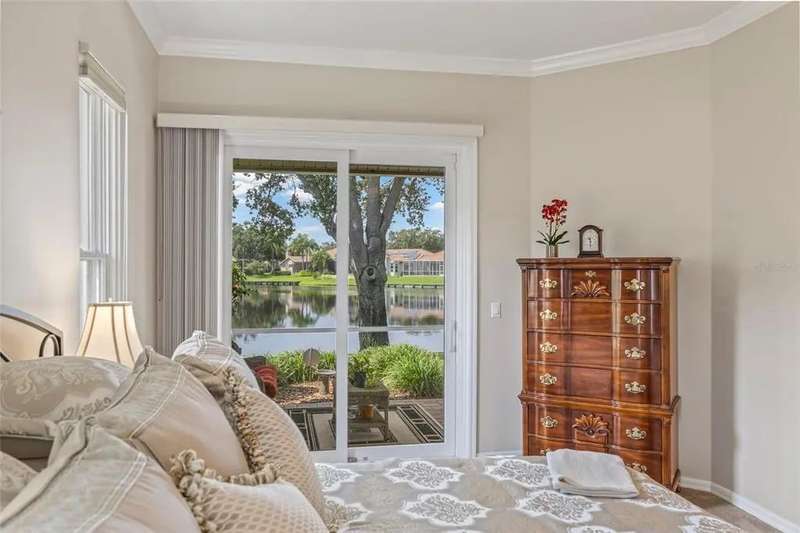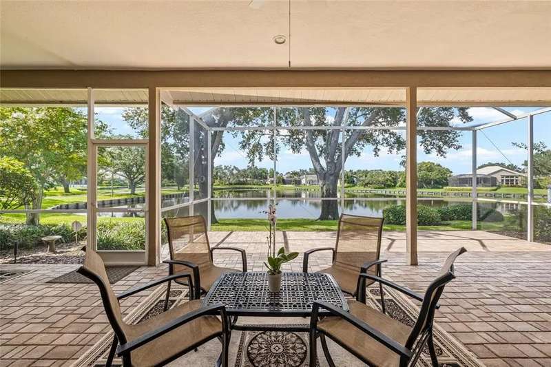Panoramic lake views are enjoyed from nearly every vantage point within this immaculate 3-bed, 2 full-bath, single-level home in the lovely gated community of Placido Bayou. Artisan brick pavers line the driveway leading to the desirable 3-car garage & welcome you through professionally designed landscaping with accent lighting. Step inside the double front doors to the expansive living room with a picturesque view of the glistening lake - a bird lovers paradise! Gather with friends & family in the large screened lanai with over 400 SF additional space for outdoor dining or an outdoor living room. A schematic for pool design in this space is available upon request. Enter through the sliding glass doors to the open-concept gourmet kitchen equipped with stainless steel appliances, custom Maple cabinetry with pull-out shelves, custom ambient LED/Halogen lighting & granite countertops. When you are ready to retire for the evening, walk through the formal dining & entertainment space to the generously-sized primary suite. The stunning primary bathroom has been updated with an extraordinary walk-in shower, dual granite vanity & a fabulous walk-in closet with custom shelving. Family members and guests have their own retreat on the opposite side of the home with a pocket door for full guest privacy. One of the guest rooms features beautiful lake views and a large walk in closet with added electrical receptacles - ideal if used as a home office or craft room. An additional guest bedroom is located down the hall and adjacent to a large remodeled bathroom with a tub-shower. As you are heading to the garage, you will find a separate laundry room with a utility sink and storage cabinetry. Whether this home will be your primary residence or a second home, you will find peace of mind in the home’s rigorous maintenance schedule and improvements. The residence features a 5G alarm system which also monitors emergency and fire protection, updated seawall cap, an in-wall preventative pest control system, updated whole-home attic insulation, commercial-grade gutters with stainless steel downspouts, attic access over the garage with an upgraded stainless steel drop-down ladder and a utility sink in the 3-car garage- just to name a few! Residents adore the peaceful nature of the community. Walk among the sidewalks, fish in the lakes, bicycle to the nearby St. Petersburg Racquet Club and minutes from downtown, I-275, beaches & 2 international airports.