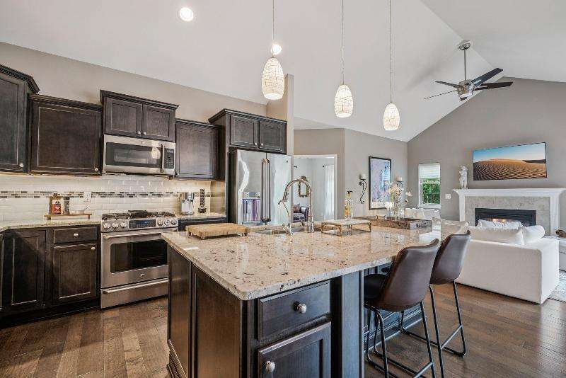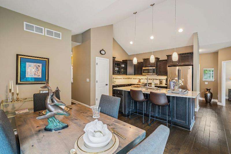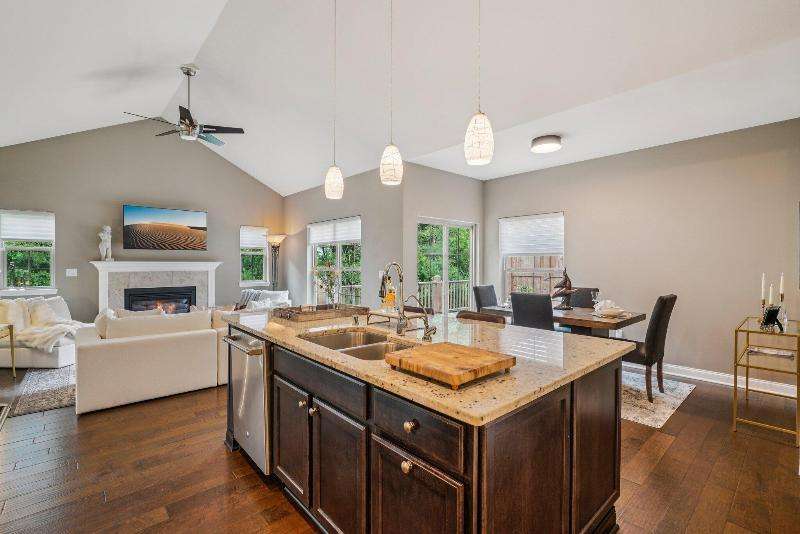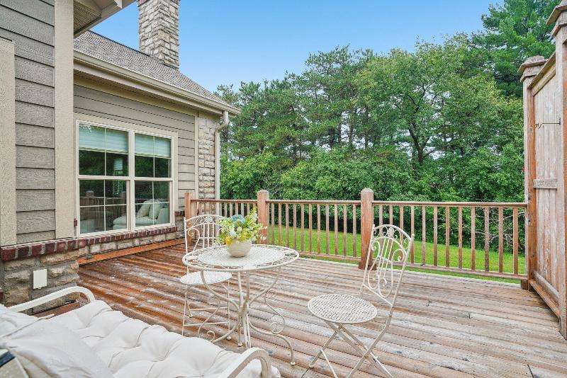 Exceptionally designed open-plan Oconomowoc ranch condo w/wooded conservancy views from the private deck-large enough to relax & dine al fresco. Sunlight pours through skylights illuminating the vaulted great room w/gas fireplace, seamlessly connected to the dining room & a culinary-inspired kitchen featuring high-end appliances, stylish tile, pantry & large custom island. Gorgeous hardwood floors span the main level, which also offers a versatile den/office. The spacious primary suite has an ensuite BA, while the 2nd bedroom enjoys a nearby full BA. Convenient main floor laundry. Lower level features 9 ft ceilings, family room, office/exercise space, 3rd bedroom & 3rd full BA. Attached 2-car garage. The Glenn amenities just steps away include a clubhouse, outdoor pool & fitness room.
