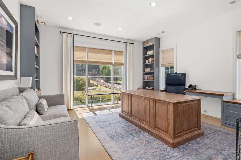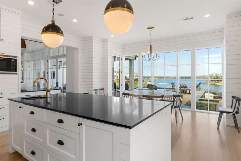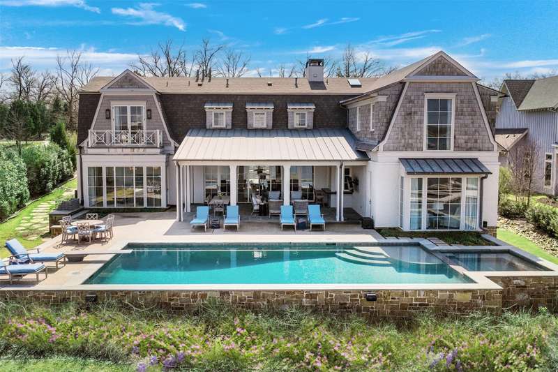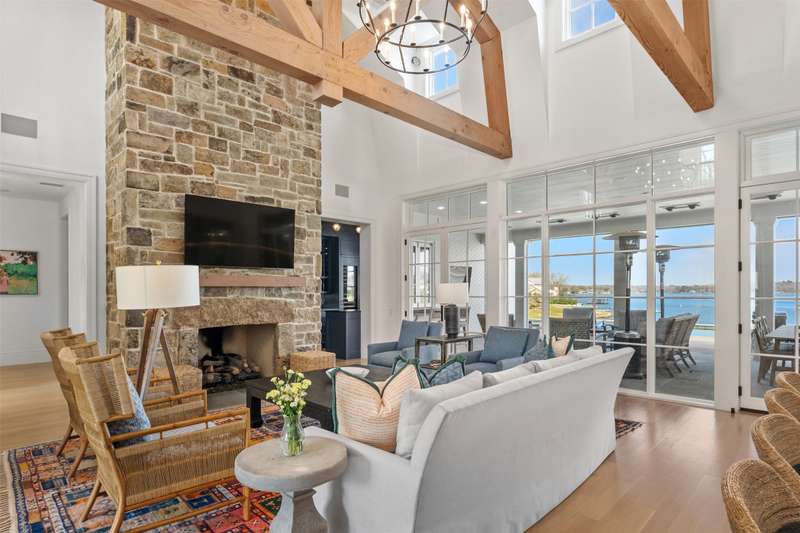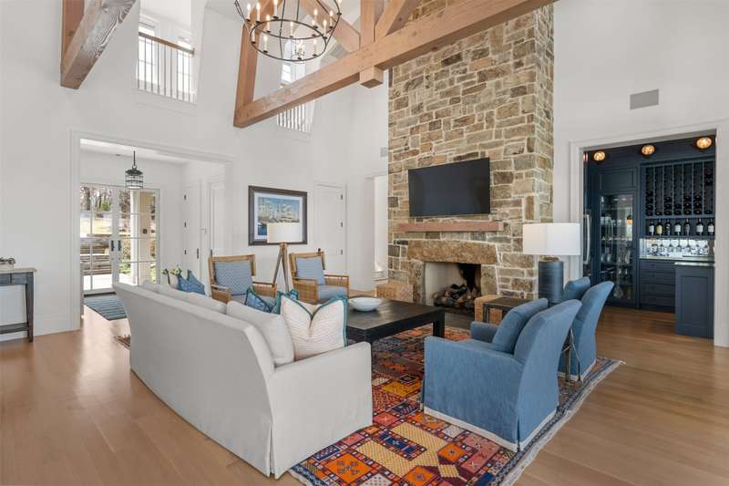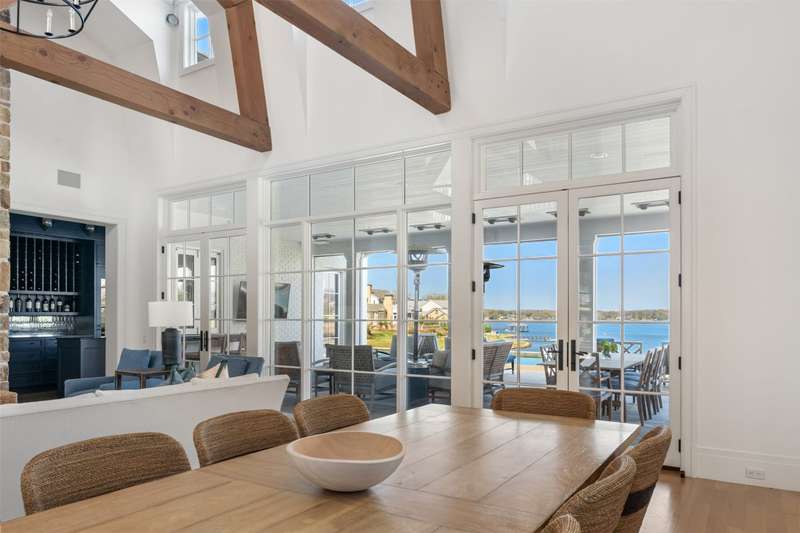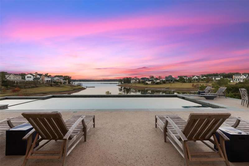 Nestled on just under an acre, this exceptional lakefront retreat in Long Cove is one of the developments most premier properties. Built by Tatum Brown Custom Homes and designed by SHM Architects, this rare find offers a thoughtfully designed floor plan ideal for entertaining. With five bedrooms, including two charming bunk rooms perfect for kids of all ages, theres ample space for family and guests to unwind. The spacious living area effortlessly connects to the dining room, breakfast room, and eat-in kitchen with seating for 12, as well as an indoor outdoor bar which is perfect for entertaining. Outside, the generous covered living and dining space offers a seamless transition to the stunning infinity pool, complete with a diving board and breathtaking open-water views. Located within the gates of Long Cove, residents enjoy world class amenities, including putting greens, two community pools, hiking and biking trails, tennis, pickleball, and more. **THIS HOME IS FULLY FURNISHED INCLUDING 2 GOLF CARTS** ensuring effortless enjoyment and the perfect setting for creating lasting memories.