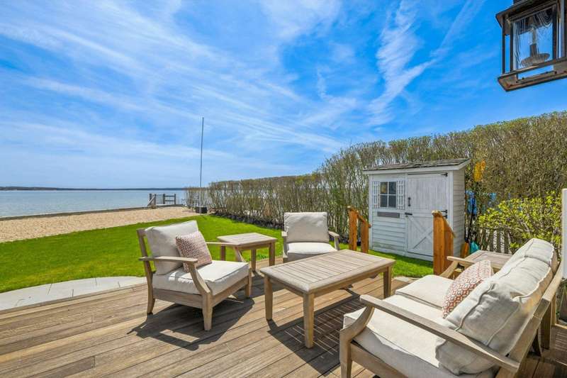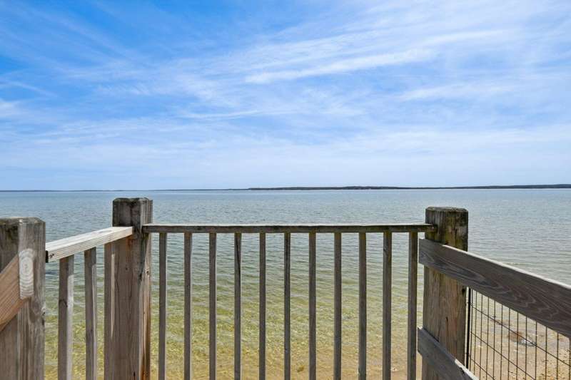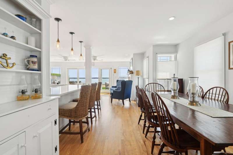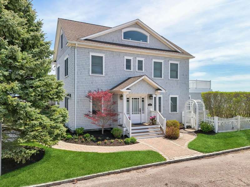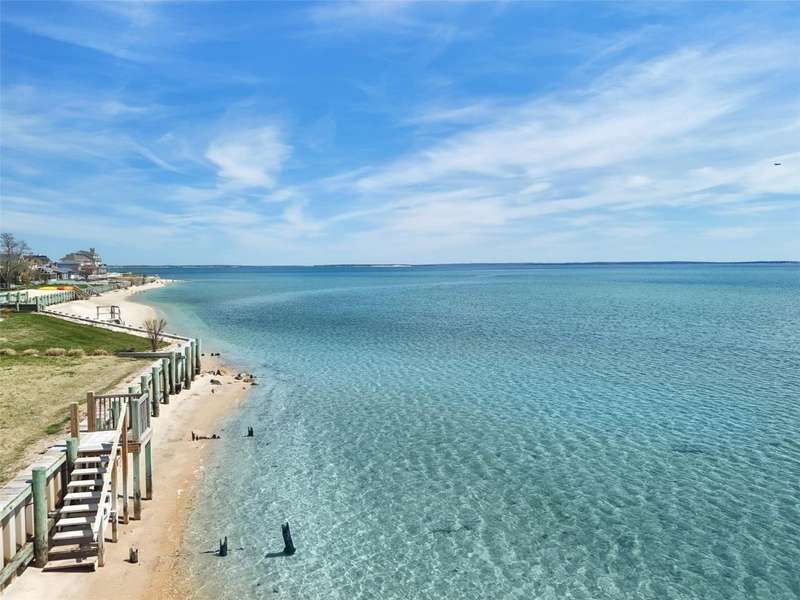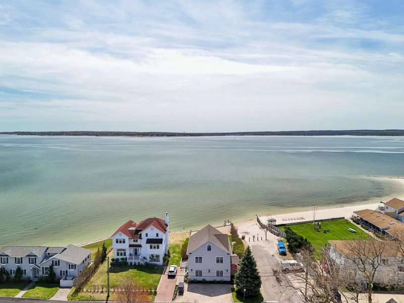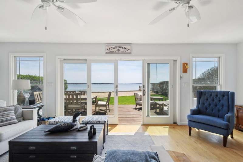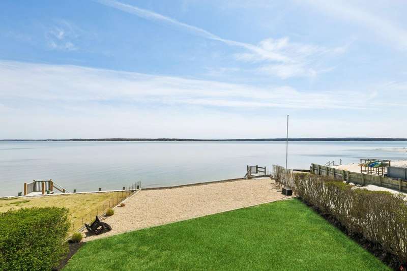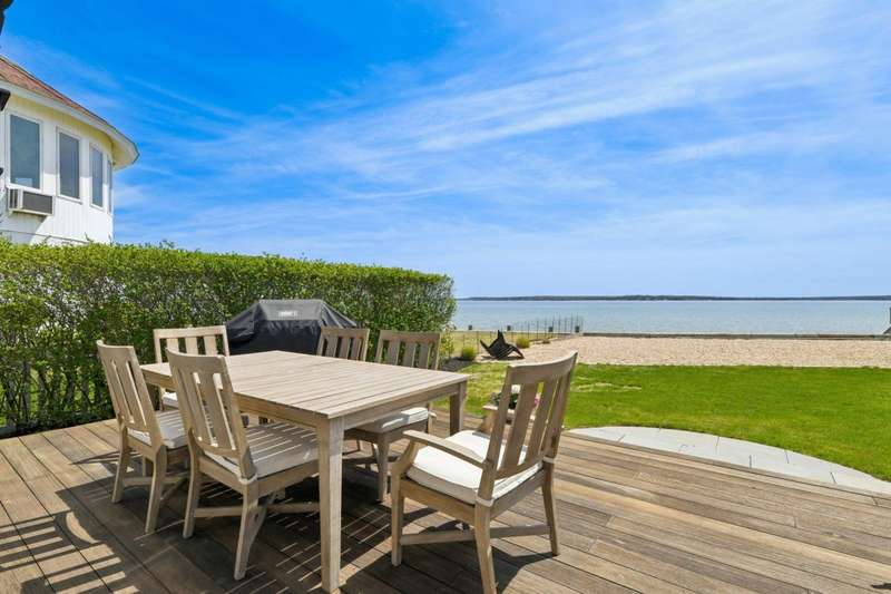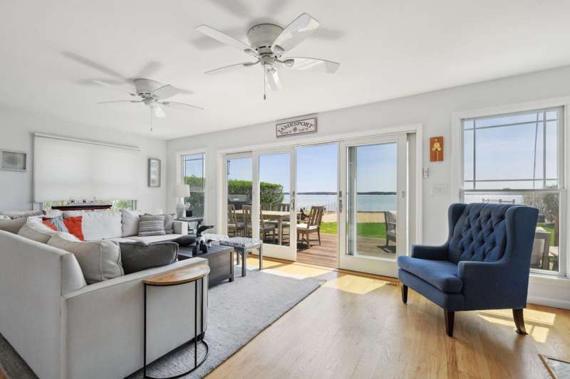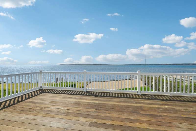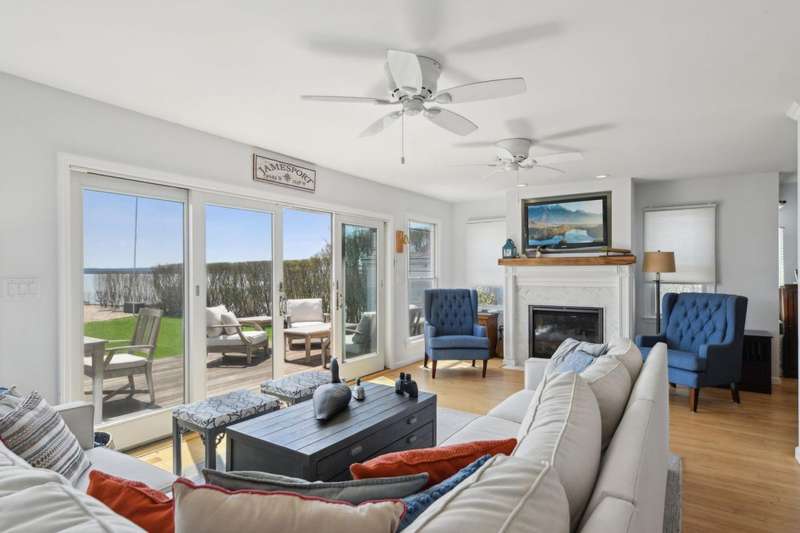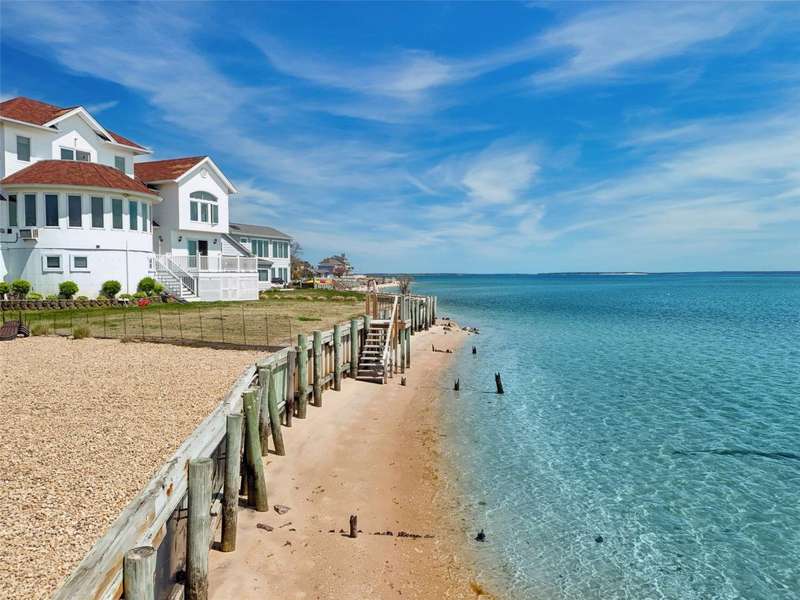 Sparkling water and serene sunsets will be yours to enjoy from Seventy Seven Front Street. Weekend getaway or year-round primary residence, this home offers something for everyone. Open main floor with easy access to the deck and a backdrop of sun glinting off the water. Wake up to bay views and step outside to the spacious deck off the second-floor primary suite. Coffee in the morning to watch the sun come up. You'll enjoy barbequing tableside, lawn games by the water, kayaks and paddle boards launched just steps from your deck. Year-round meal prep in the kitchen featuring a gas range, wine fridge and quartzite counters over the work island and long counter with stools where everyone will gather during cocktail hour. As the cooler weather sets in, the dining space adjacent to the kitchen is perfect for holiday celebrations and the gas fireplace adds warmth on a cool night. The house is a traditional style with cedar shake shingles, natural gas heat, central air conditioning, wood floors, red oak decks, many windows and lots of sunlight. There are ceiling fans throughout the home encouraging true indoor/outdoor living. With five bedrooms, you can accommodate overnight guests. Two bedrooms are on the main floor. Two additional bedrooms and the primary suite occupy the second floor. The home is big enough for everyone to find a favorite spot in it and perfectly sized to enjoy year-round or as your weekend getaway. This area of Historic Jamesport is in wine country, you won't be far from dining, shopping and recreational opportunities. Seventy Seven Front Street is a true coastal gem offering the ultimate in both comfort and lifestyle. Live the waterfront dream and wake up every morning to stunning views of the Peconic Bay!