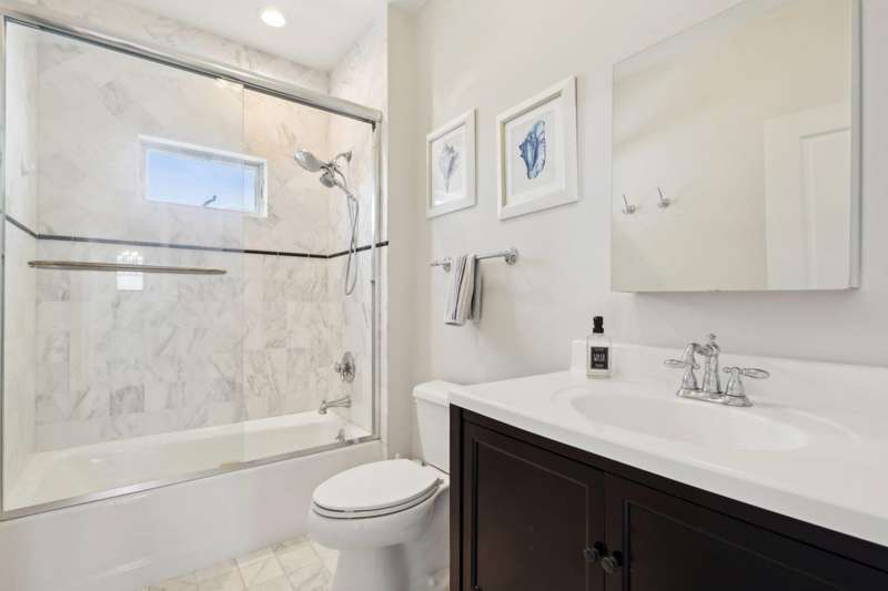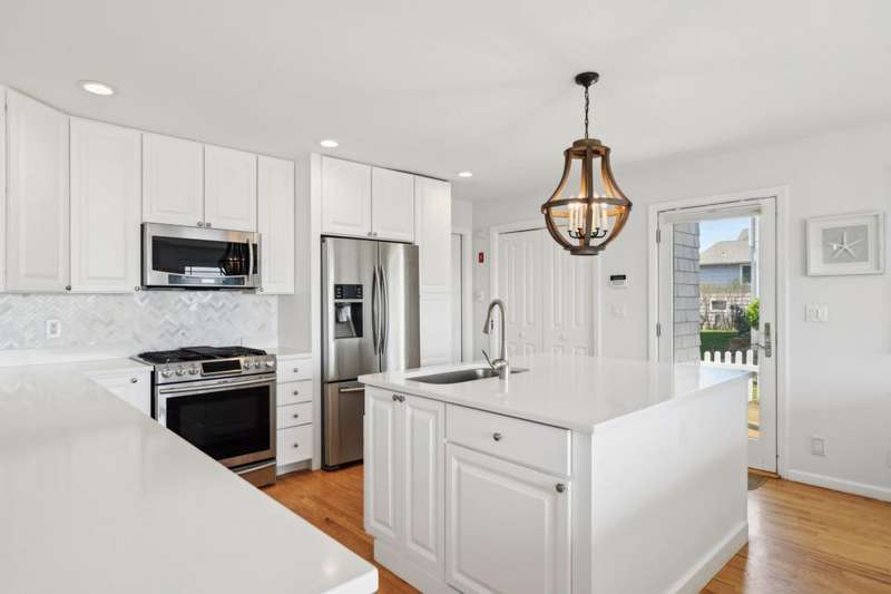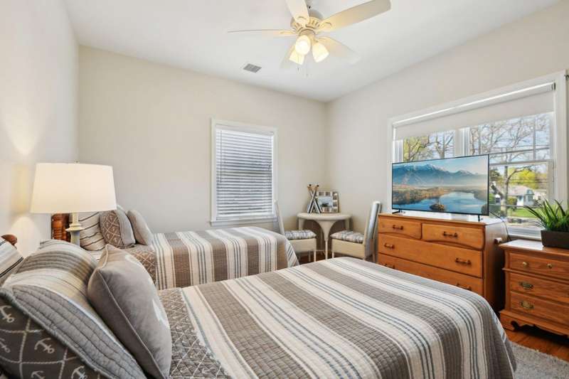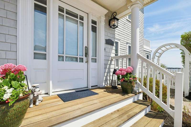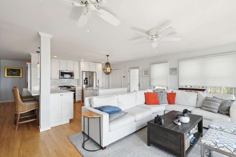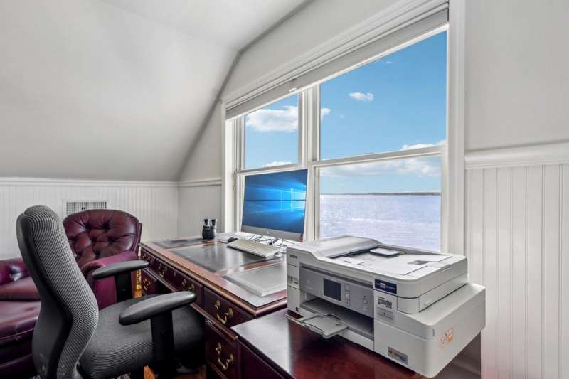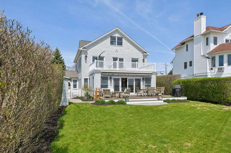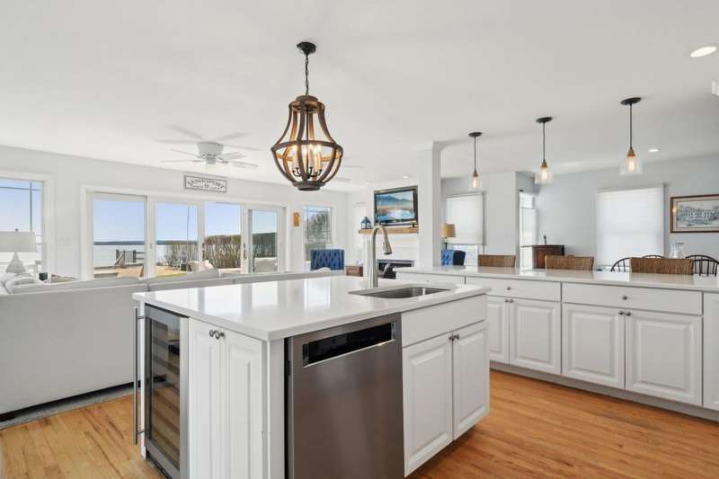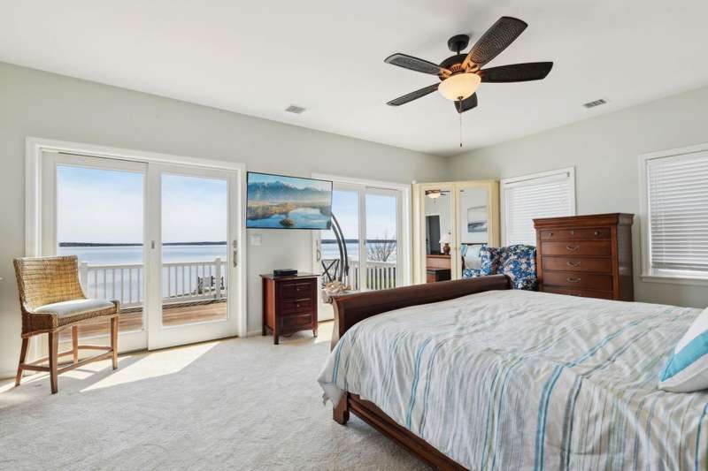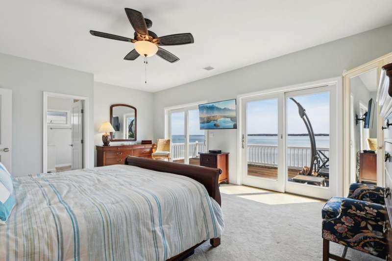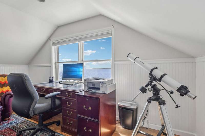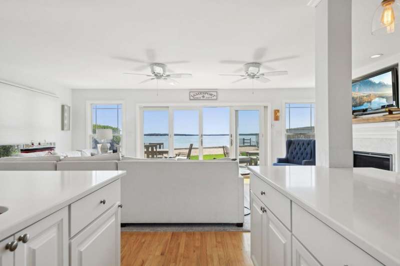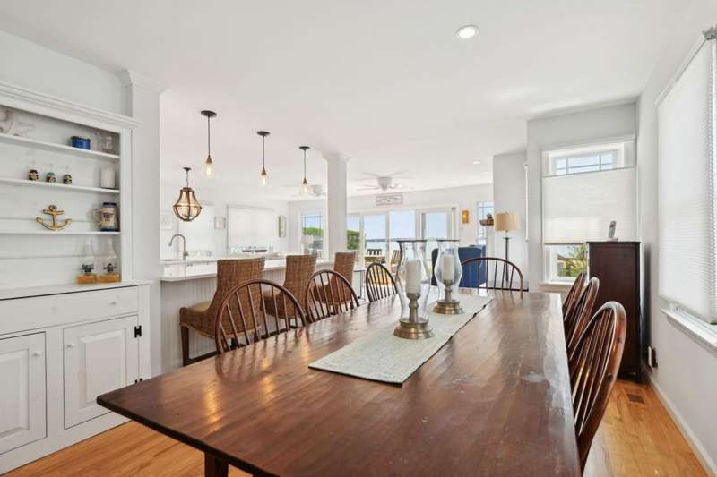 Sparkling water and serene sunsets will be yours to enjoy from Seventy Seven Front Street. Weekend getaway or year-round primary residence, this home offers something for everyone. Open main floor with easy access to the deck and a backdrop of sun glinting off the water. Wake up to bay views and step outside to the spacious deck off the second-floor primary suite. Coffee in the morning to watch the sun come up. You'll enjoy barbequing tableside, lawn games by the water, kayaks and paddle boards launched just steps from your deck. Year-round meal prep in the kitchen featuring a gas range, wine fridge and quartzite counters over the work island and long counter with stools where everyone will gather during cocktail hour. As the cooler weather sets in, the dining space adjacent to the kitchen is perfect for holiday celebrations and the gas fireplace adds warmth on a cool night. The house is a traditional style with cedar shake shingles, natural gas heat, central air conditioning, wood floors, red oak decks, many windows and lots of sunlight. There are ceiling fans throughout the home encouraging true indoor/outdoor living. With five bedrooms, you can accommodate overnight guests. Two bedrooms are on the main floor. Two additional bedrooms and the primary suite occupy the second floor. The home is big enough for everyone to find a favorite spot in it and perfectly sized to enjoy year-round or as your weekend getaway. This area of Historic Jamesport is in wine country, you won't be far from dining, shopping and recreational opportunities. Seventy Seven Front Street is a true coastal gem offering the ultimate in both comfort and lifestyle. Live the waterfront dream and wake up every morning to stunning views of the Peconic Bay!