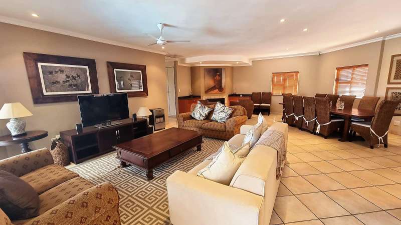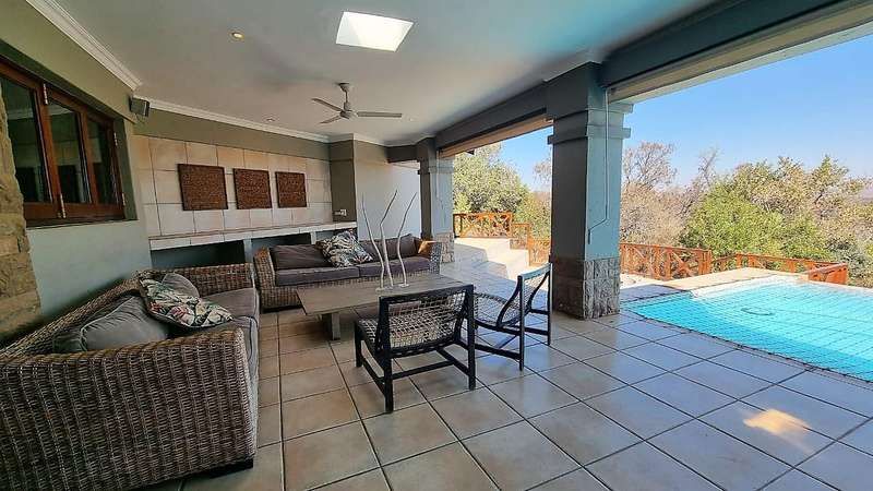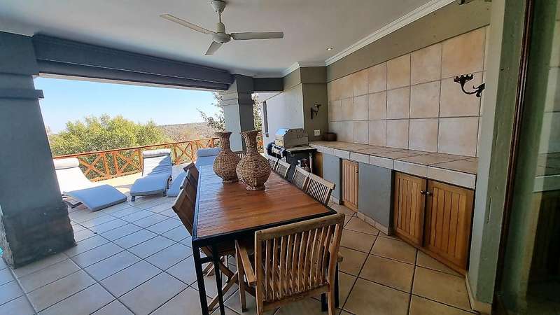 SHARE FOR SALE in stunning 5 bedroom lodge. 4 Weeks per year. Lodge consists of 5 en suite bedrooms, bath and shower in 4 bathrooms and one shower only. All bedrooms opening onto a small balcony. Open plan kitchen with gas hob and electric stove. Scullery with washing machine, dryer and dishwasher + an outside sink. Open plan living and dining area with fireplace, opening onto patio with boma braai area. Lovely pub also opening onto patio and pool. Elements is a sought after golf course. Come see for yourself.