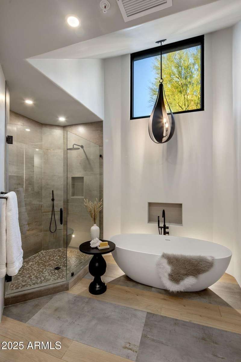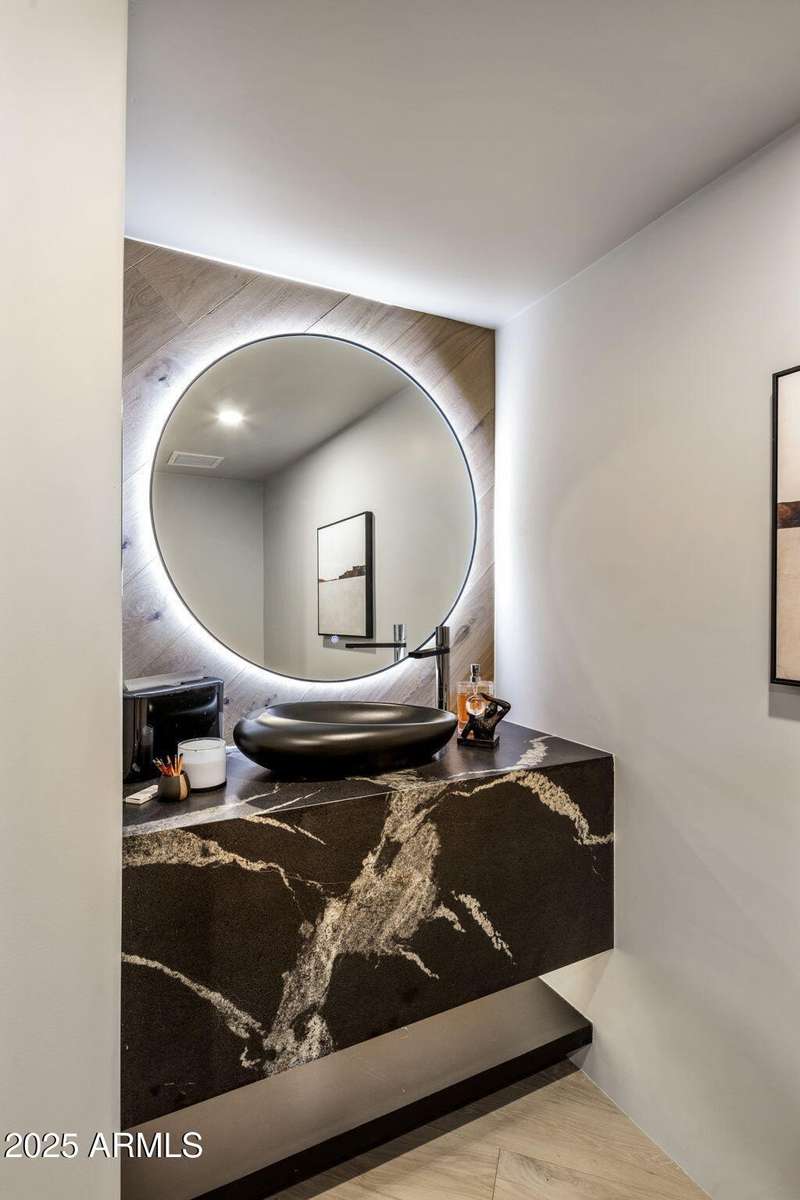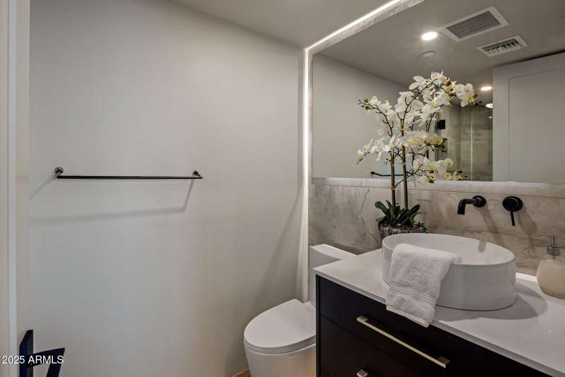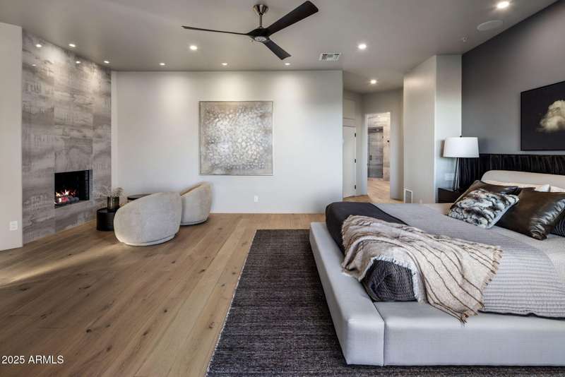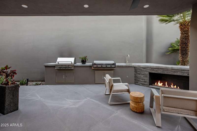 Situated in Desert Highlands coveted Hillside Villas, this spectacular custom home sits high on the side of Pinnacle Peak, showcasing some of the most captivating panoramic city-light and mountain views in North Scottsdale. Rebuilt in 2023, this modern retreat blends contemporary design with desert serenity, creating an unforgettable living experience. Every detail of craftsmanship exudes quality, dramatic design, and timeless sophistication. Within this guard-gated community, residents enjoy immediate golf membership and the soon-to-reopen Jack Nicklaus Signature Golf Course, debuting mid-November after a complete redesign and restoration, along with new women's locker room and a new pro shop, further elevating the world-class country club experience. Floor-to-ceiling retractable glass walls dissolve the boundary between indoors and out, while curated finishes include a gourmet kitchen, glass-enclosed wine display, elevator, Sonos sound system, and owned solar. The thoughtful layout features dual primary suites, a third ensuite, and a versatile flex space ideal for an office, gym, or media lounge. From every corner of this residence, you'll find the perfect ambiance for both intimate gatherings and grand entertaining. Ideal as a full-time haven or a low-maintenance retreat, this home embodies modern desert living at its most inspired where architecture, lifestyle, and landscape exist in perfect harmony.