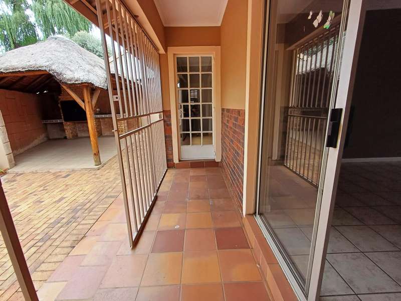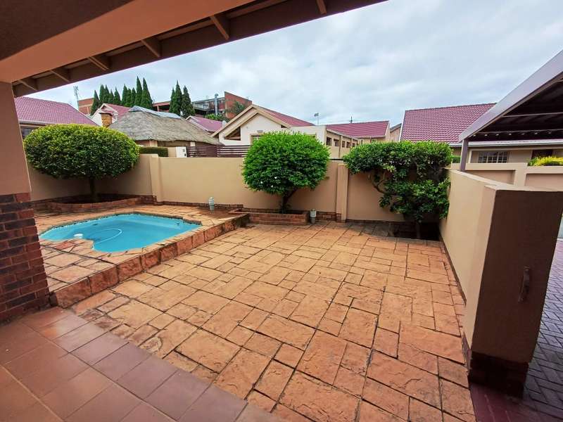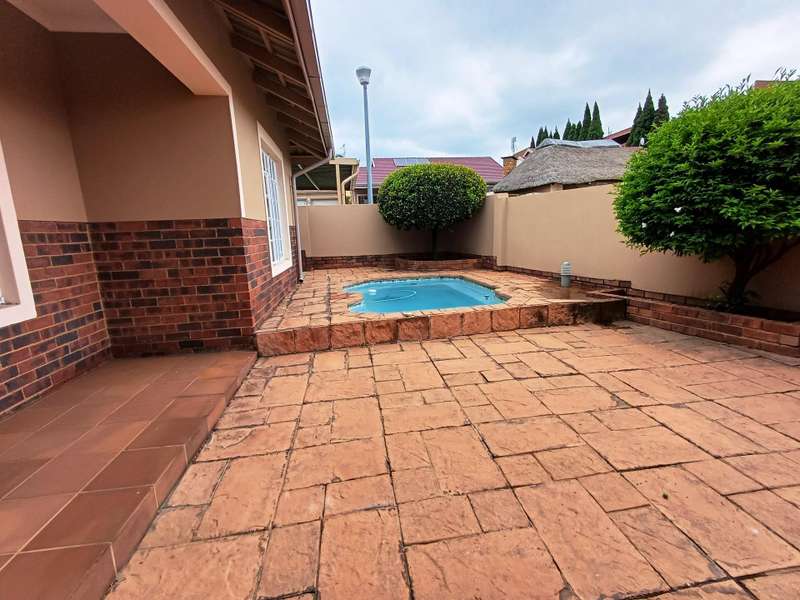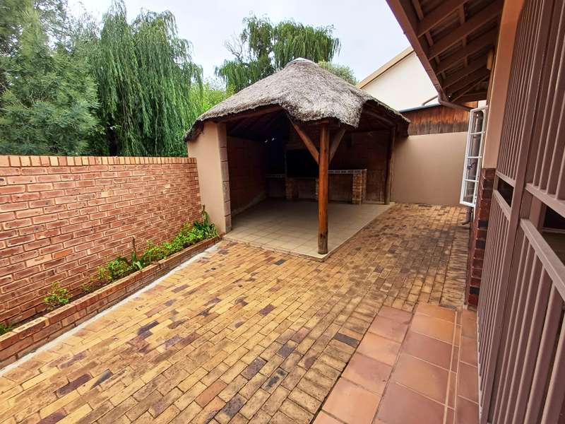 Entertainment area with a built-in braai and a sparkling splash pool.