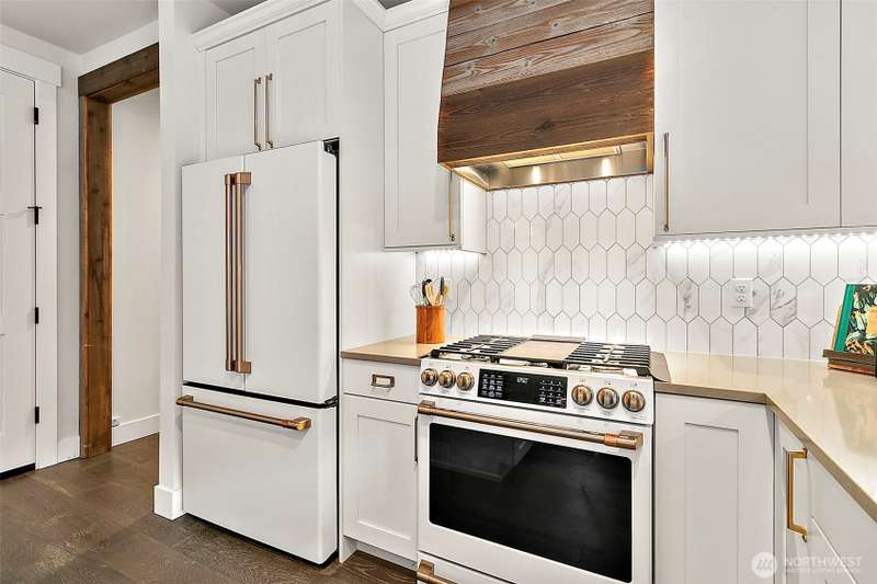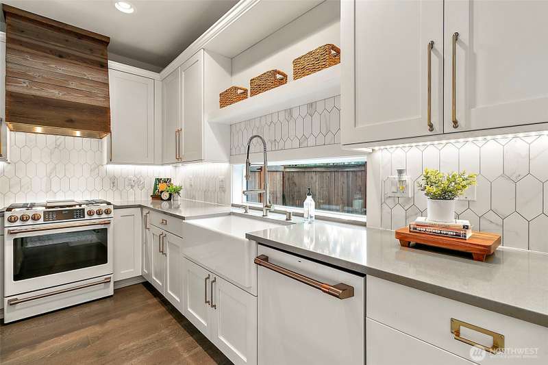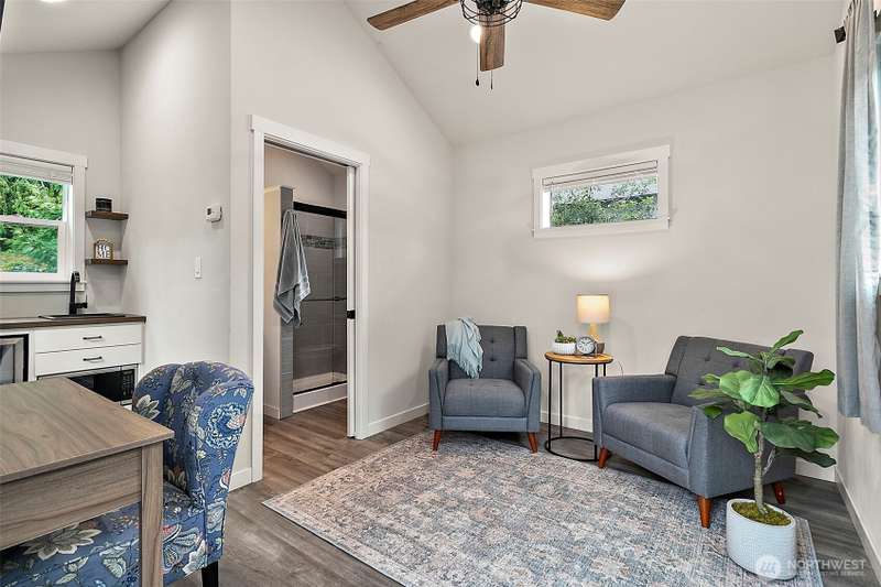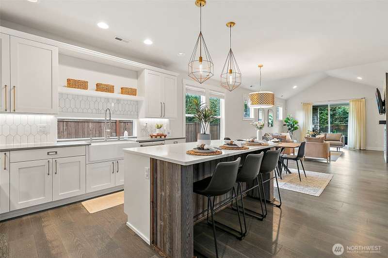 Modern farmhouse in the highly rated Tahoma School District featuring upscale finishes throughout. European oak floors lead to a chef’s kitchen with GE Café appliances, farmhouse sink, quartz counters, and a large pantry. Gas fireplace with built in shelves. Main-floor primary retreat offers vaulted ceilings, walk-in closet, and spa-like 5-piece bath. Dedicated office makes remote work easy. Upstairs includes an en-suite bedroom, two additional bedrooms, full bath, and laundry. Enjoy a covered patio with brick gas fireplace overlooking the landscaped yard. Detached flex space with kitchenette and ¾ bath is perfect for guests, hobbies, or a studio. 2 car Garage with storage. This commute and location is just what you have been looking for!