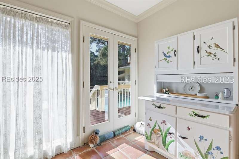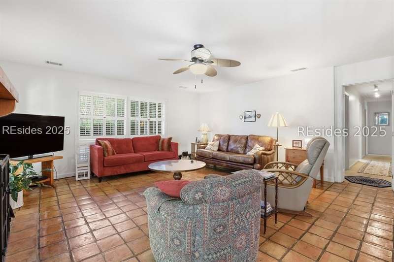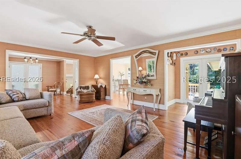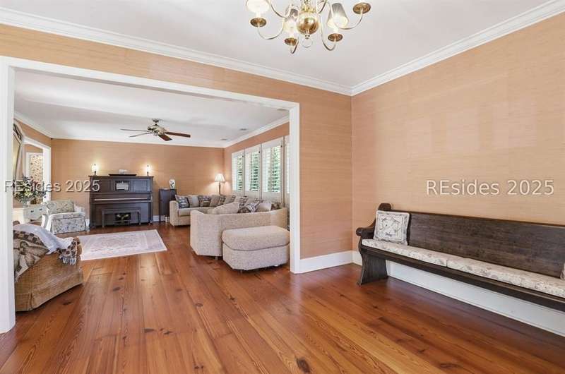 Location is everything! Just 3rd row from the ocean and steps from the private Port Royal beach, this 5-bedroom, 3.5-bath home sits on an extra-large almost half an acre! The property features a private pool, screened porch, and beautiful lagoon views, offering endless potential to create your dream Lowcountry retreat. The kitchen opens to a spacious family room and dining area, with heart pine floors, a wet bar, plantation shutters, and a separate formal dining room. The primary bath has been remodeled, and the home offers an inviting floor plan ideal for both relaxing and entertaining. While the property is being sold as-is and would benefit from some updating, its priced to sell and the location and lot size are unmatched. A rare opportunity to own in the sought-after private beachfront community of Port Royal!