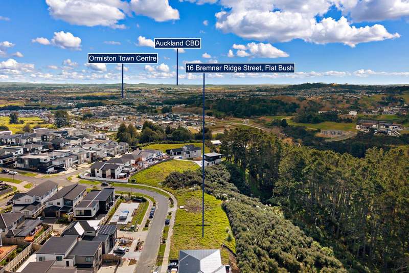 16 Bremner Ridge, Flat Bush Positioned in one of Flat Bush’s most exclusive enclaves, this exceptional 1,530sqm (more or less) section offers an extraordinary opportunity to build your dream home in a setting defined by prestige and natural beauty. Set among architecturally designed residences and elevated to capture sweeping valley views, this north-facing site is bathed in natural light and surrounded by lush greenery — a perfect canvas for creating a home that blends elegance with everyday comfort. Key Features: • Expansive 1,530sqm (mol) freehold site with a wide 21m road frontage • Fully serviced and ready to build immediately • Approved Building Consent in place – save time and start construction now • Architectural plans by acclaimed Shape Architects for a stunning 335sqm residence • Largest side yard setbacks within the Bremner Ridge development, offering space and privacy • North-facing rear aspect with mature trees framing your serene outdoor environment Located within easy reach of top schools, the Ormiston Town Centre, and all urban conveniences, this address is more than just a place to live — it’s an investment in lifestyle, design, and enduring quality. Come home to Bremner Ridge — where luxury meets tranquillity. Note: While care has been taken in the preparation of these particulars, no responsibility is accepted for the accuracy of the whole or any part thereof and interested persons are advised to make their own enquiries and satisfy themselves in all respects.