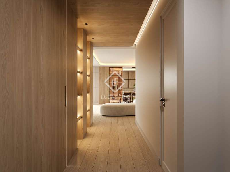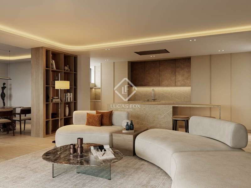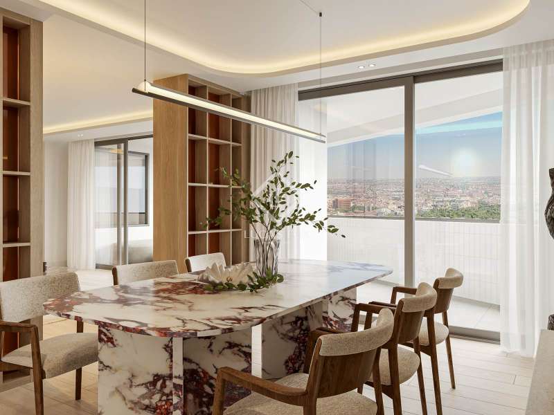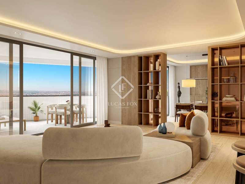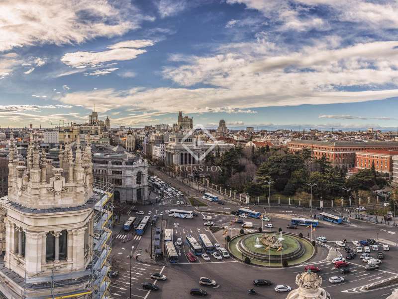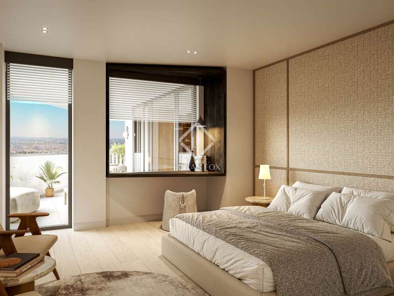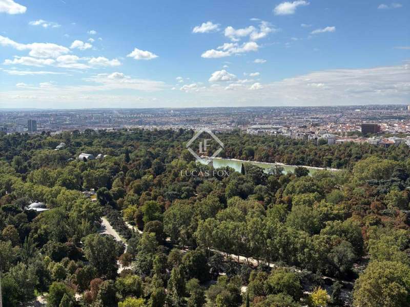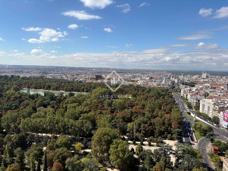 Lucas Fox presents this exclusive 283 m² penthouse on the 27th floor of the Torre de Valencia, the highest currently available for pre-sale in Madrid. Located on O'Donnell Street, it offers unique panoramic views of Retiro Park and a comprehensive renovation project scheduled for completion in September 2025. The property has recovered its original terrace, transformed into a spectacular social space with landscaping, integrated vegetation, and custom furniture. The living area is organized as a large open space connecting the living room, dining room , and kitchen with a central island, equipped with high-end appliances and a separate laundry area . The private area features three en-suite bedrooms with custom-made wardrobes, as well as a guest toilet. The main bedroom features a walk-in closet and a uniquely designed bathroom with a freestanding bathtub and natural stone pieces. The entire interior design, including furniture and decor, has been designed exclusively for the property, providing aesthetic coherence and a unique character. The renovation combines fine materials with a contemporary style that respects the tower's iconic spirit. Its finishes include natural wood floors, CorVision aluminum frames, architectural lighting, and built-in faucets by Porcelanosa. The property includes a parking space, a storage room , and 24-hour doorman service. A one of a kind penthouse in the Madrid skyline, with unique light, height, and personality overlooking the Retiro Park.