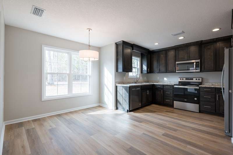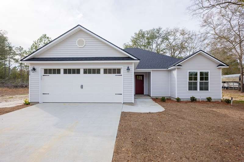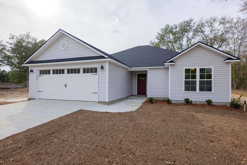 New Construction with split floor plan under 230k. Kitchen has custom cabinets, window above sink, a separate pantry, stove/oven combo, microwave, fridge, dishwasher and the dining area beside it with a door going to the covered back porch. Lots of light in this area. Both the main bedroom and living room have trey ceilings. The main bath has double vanities and custom cabinets. Luxury Vinyl Plank(LVP)flooring in living, kitchen, dining, laundry and hall bath. Carpet in bedrooms and tile in master bath. Nice large lot over 1/2 an acre. Two car garage with remotes and keypad entry. Contact agent for more New Construction possibilities! Estimated completion is Mid November . Listing agent is part owner. Taxes on lot only. Photos are of a house with the same floor plan.